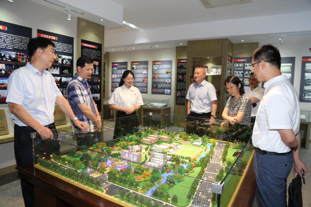 指导组一行实地调研走访了体艺楼、教室、图书馆、院史馆等。
