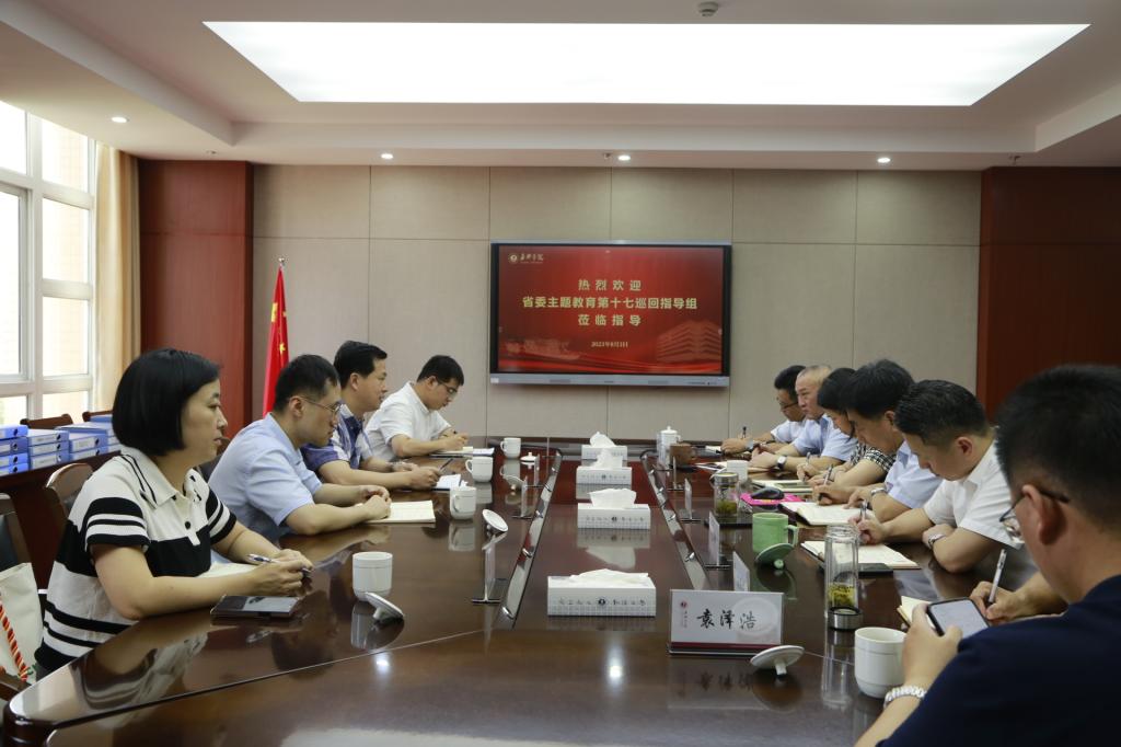 朱素斌首先介绍了学院的办学历史和发展现状,并重点就学院主题教育开展情况进行了汇报。他指出学院党委高度重视、认真组织主题教育工作,紧跟中央决策部署和省委、学校的工作要求,牢牢把握“学思想、强党性、重实践、建新功”总要求,坚持系统谋划开局,紧跟步伐与凸显特色相结合;坚持理论学习起步,“学”与“思”相融合;坚持党的群众路线,推动调查研究走深走实;坚持发展推动破题,做到与中心工作相统一,切实推动党员干部和全体党员将焕发出来的学习、工作热情转化为攻坚克难、干事创业的强大动力,着力推动学院高质量发展,确保主题教育取得扎实成效。