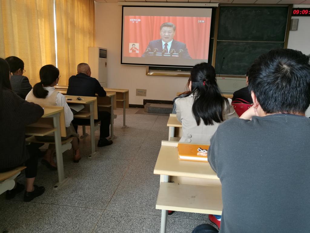 10月18日上午9:00,学院组织全体师生党员在多媒体教室五观看了中国共产党第十九次全国代表大会开幕式全程直播。