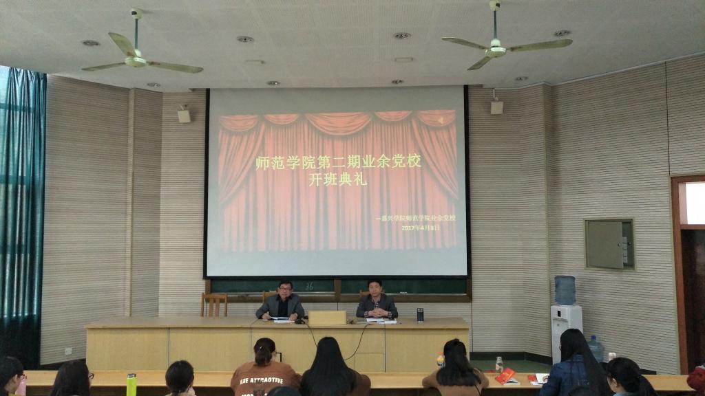 4月8日上午,师范学院业余党校第二期培训班开学典礼在阶梯教室一举行。学院院长、党总支书记丁连生,党总支委员江建出席活动,参加开班典礼的还有本期业余党校的学员和班主任。典礼由江建老师主持。