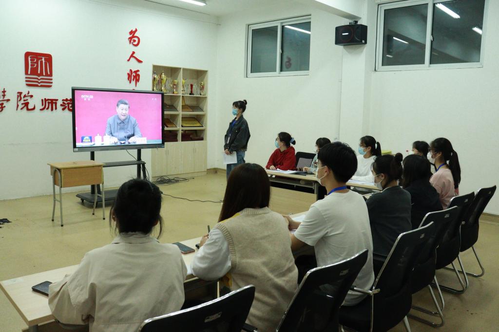 此外,学院118名生干部在仔细学习后,开展了分享会进行交流,全体学生干部手写青年宣言并署名,立志要立足新时代新征程、传承红色基因。