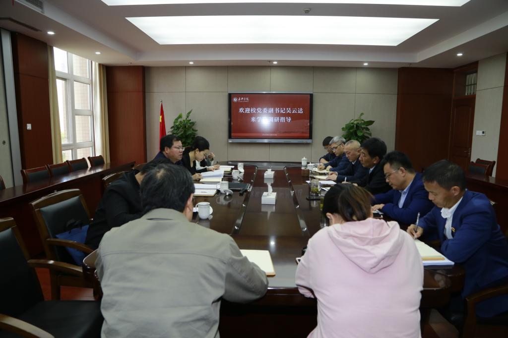 10月12日上午,校党委副书记吴云达来学院调研指导党建工作。校组织部副部长任玉萍和学院党委领导班子成员、支部书记代表、学生党员代表参加调研座谈会。