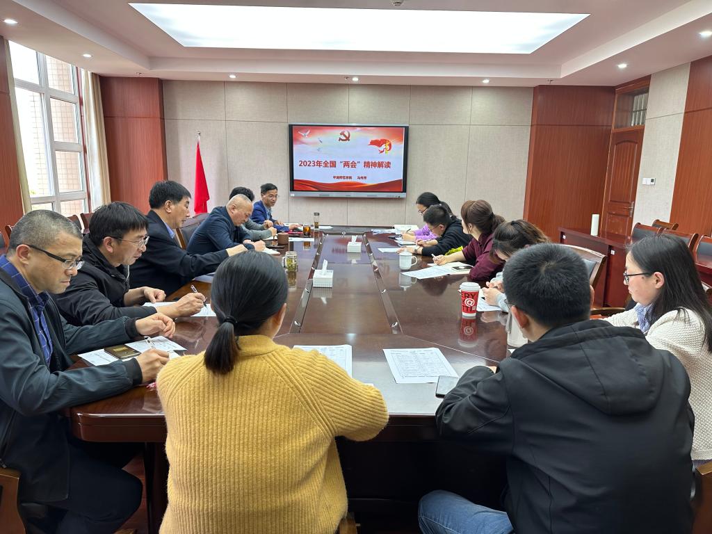 朱素斌在讲话中强调,今年是全面贯彻落实党的二十大精神的开局之年。学习贯彻习近平总书记重要讲话精神和全国“两会”精神,是当前一项重要政治任务。一要坚持以习近平新时代中国特色社会主义思想为指导,把学习贯彻“两会”精神与学习贯彻习近平新时代中国特色社会主义思想主题教育和习近平总书记关于教育的重要论述、党的二十大精神结合起来。二要认真学习领会、凝聚思想政治共识,以昂扬奋进姿态,坚定不移地沿着习近平总书记指引的道路踔厉奋发、勇毅前行,奋进新征程、建功新时代。三要做到学深悟透,求真务实,强化学习实效。习近平总书记在全国两会期间发表的一系列重要讲话,强调强国建设、民族复兴的接力棒历史地落在我们这一代人身上,强调牢牢把握高质量发展这个首要任务等,是我们做好当前和今后一个时期工作的根本指引、根本遵循。我们要深刻领悟“两个确立”的决定性意义,坚决做到“两个维护”,抢抓发展机遇,做到真抓实干,推动升师申硕等中心工作取得实效, 营造团结进取、干事创业的良好氛围。