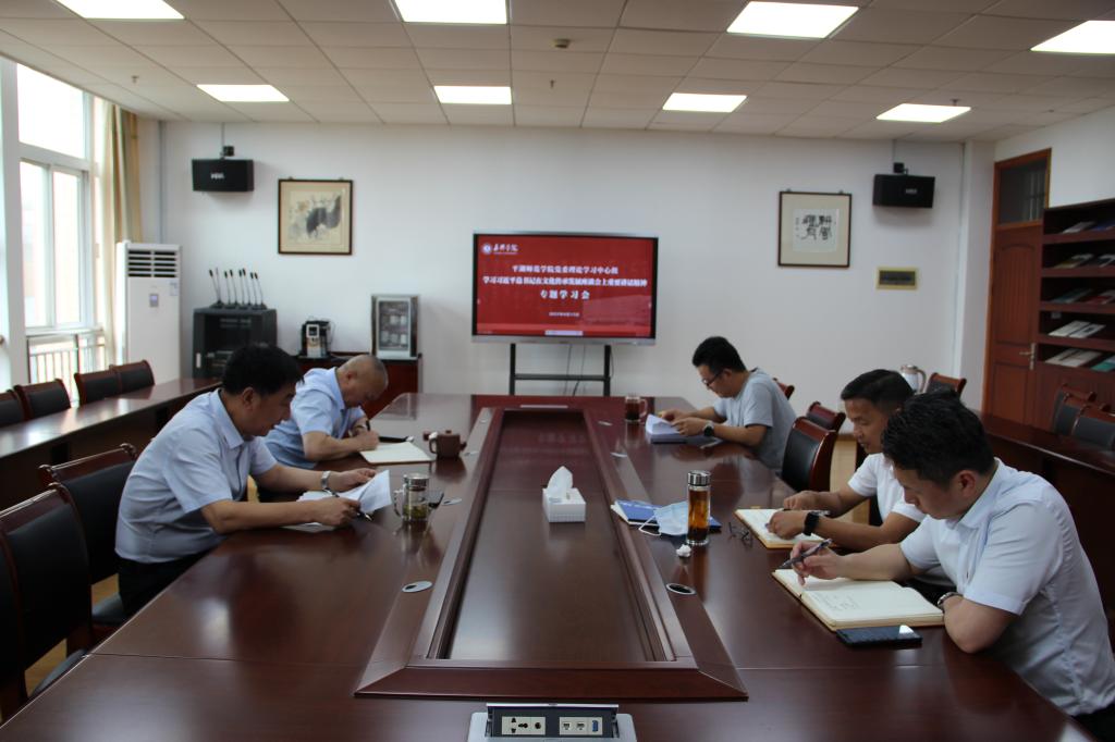 6月13日,学院党委理论学习中心组举行习近平总书记在中共中央政治局第五次集体学习会和文化传承座谈会上的重要讲话精神。学院党委书记朱素斌主持学习会并作领学,学院党委委员、副院长王明建作中心发言。