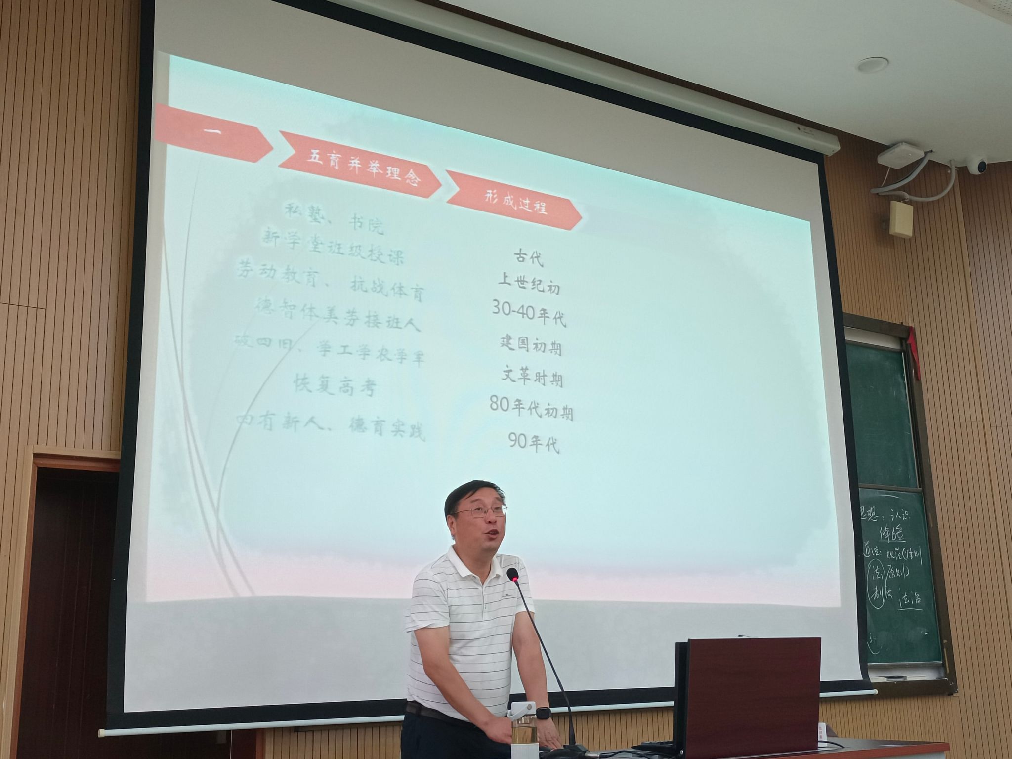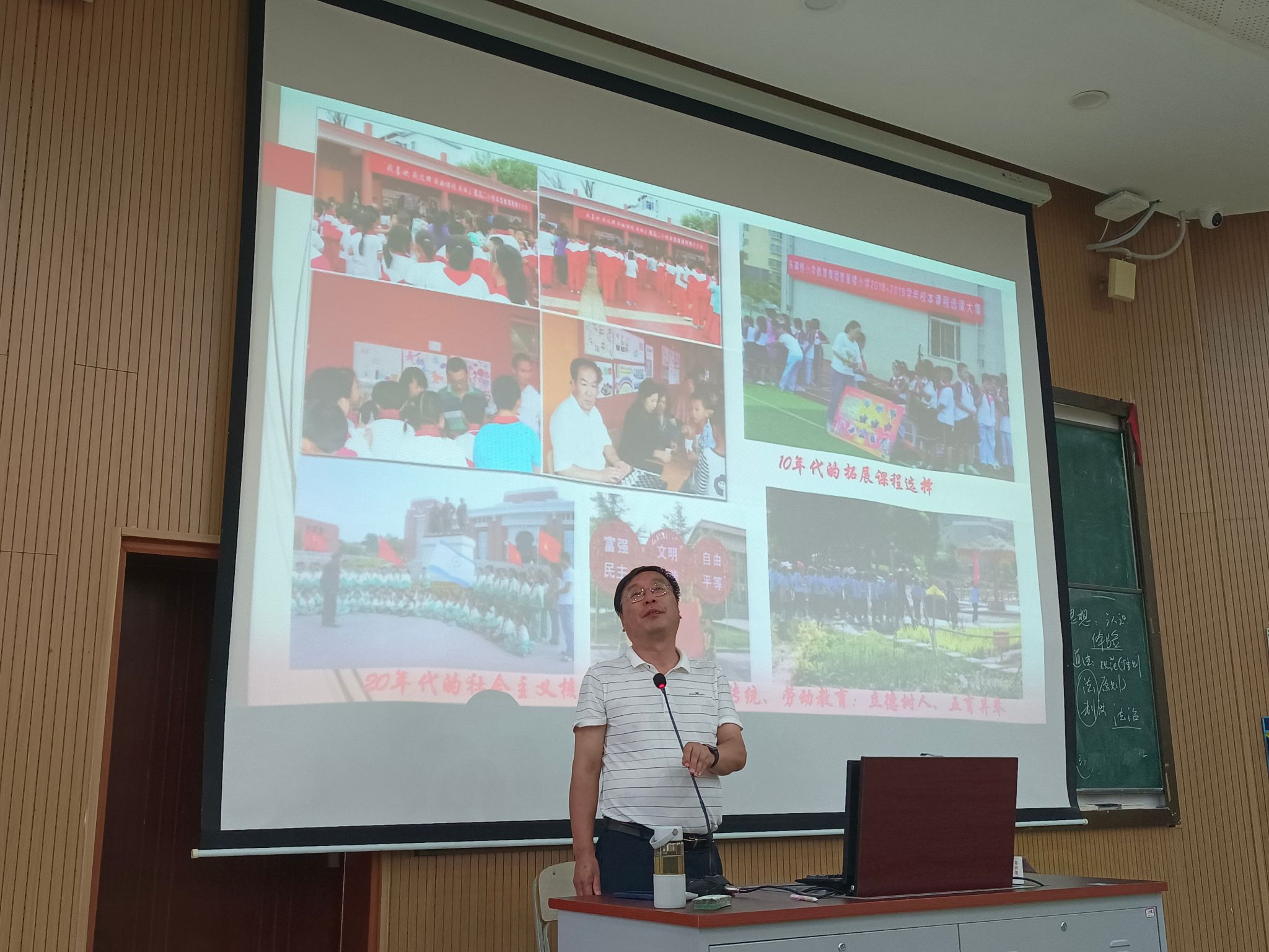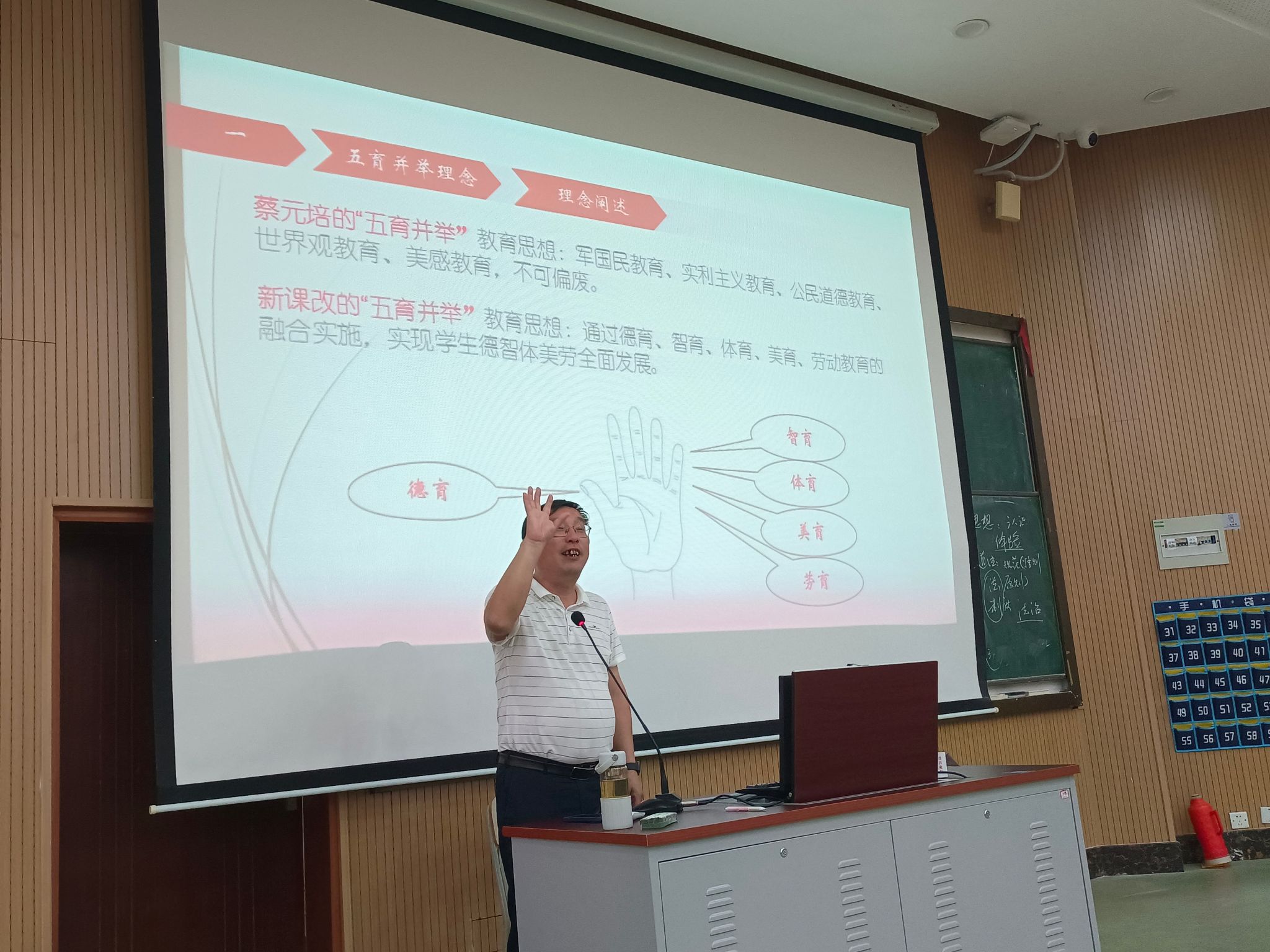 屠园中校长长期从事学校课程建设、学科教学、教育评价等研究,发表或获奖50余篇论文,出版专著或教材5部,主持省级课题研究5项,科研成果丰硕,曾获浙江省农村教师突出贡献奖、浙江省教育科研先进个人、嘉兴市优秀党务工作者、嘉兴市名校长等荣誉。讲座中,屠校长首先阐述了五育并举理念的形成过程与时代特征,通过"社会即学校"理念勾画了未来学校的样式,重点讲解了学校课程架构与实施,以此为基点,对课程架构、课程实施、教学评价、教师素养提出自己的见解。讲座理论结合实践,内容丰富多元,引人深思。