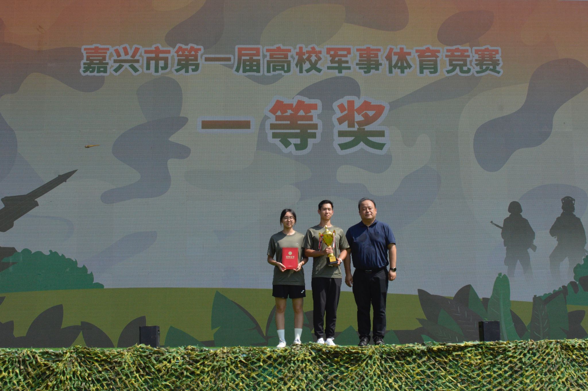 入场仪式上,“嘉大特种部队”作为第一支队伍,以昂扬的精神风貌进行了风采展示。开幕式结束后,军事体育竞赛正式拉开帷幕。本次竞赛共设穿越障碍、水枪射击、知识竞答、野外炊事四个项目。竞赛场上,“嘉大特种部队”的成员们犹如猛虎下山,每个项目都全力以赴。在穿越障碍项目中,参赛队员们如同离弦之箭,在百米赛道上疾驰,他们身轻如燕,灵活穿梭。拉拉队的同学们更是热情高涨,他们挥舞着手中的标语牌,用嘹亮的口号和激昂的喇叭声为参赛队员们加油助威。“加油!嘉大特种部队!”“你们是最棒的!”经过激烈的比拼,最终“嘉大特种部队”取得一等奖的好成绩。