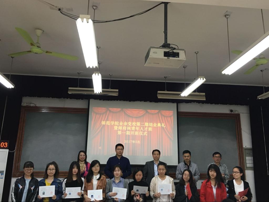 5月5日中午,师范学院业余党校第二期结业典礼暨师范学院师府林青年人才班第一期开班仪式顺利举行。学院党政班子全体成员出席活动。