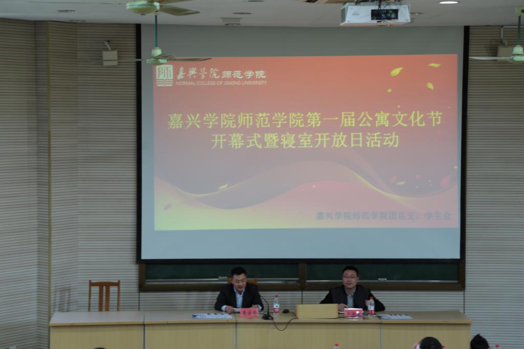 2017年4月13日下午,师范学院第一届公寓文化节开幕式在阶梯教室一顺利举行。学院副院长李启会、学院党总支委员江建出席,贺长雁、祝琴等班主任应邀参加,现场学工办、团总支组织了200余名学生代表。开幕式由学院党总支副书记毕洪东主持。