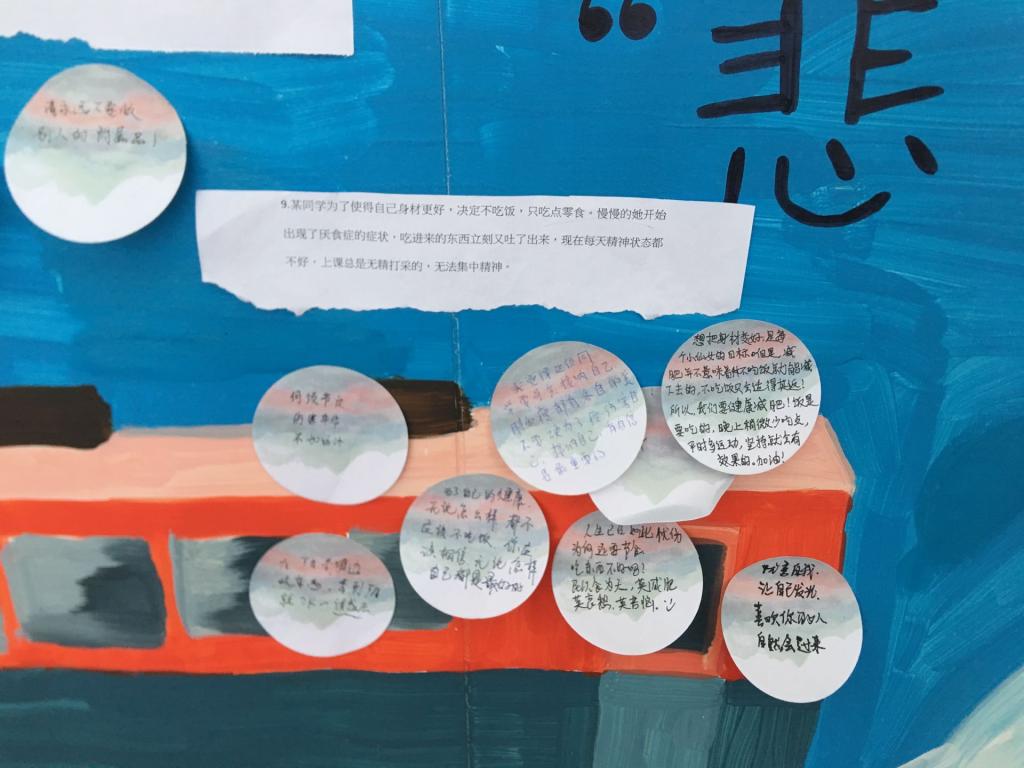 本次“5·25”心理健康月活动以“聆听心声,从‘心’起航”为主题,开展了“同行之路心连心”和“悲欢匣子”两个系列活动。“同行之路心连心”活动以游园会形式展开,同学们在游戏的同时也收获了友谊和欢乐。“悲欢”匣子系列活动分为“悲欢”榜单和“心灵沟通,阳光生活”主题班会两个部分。“悲欢”榜单活动通过在展板上张贴“烦恼”,邀请同学们用便利贴留言的方式,向同学们传递温暖与感动。“心灵沟通,阳光生活”主题班会活动也有序开展。