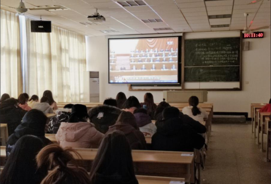 12月18日上午10点整,应用技术学院全体学生会干部、各班班长、副班长、团支书和预备党员在多媒体教室十观看庆祝改革开放四十周年大会直播。
