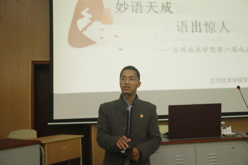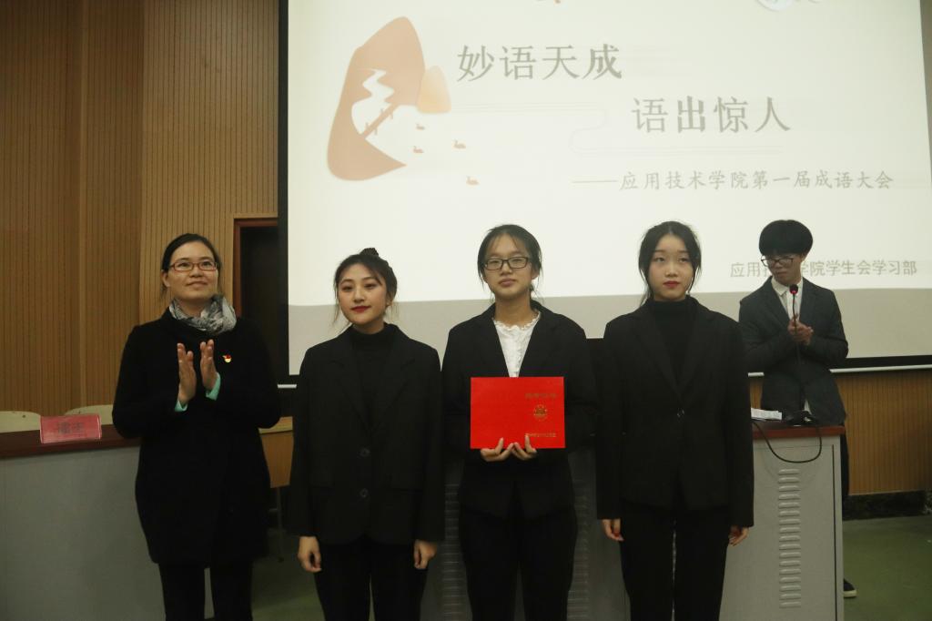 12月6日晚,应用技术学院首届成语大赛于阶梯教室二正式开展。学院党总支副书记冯伟芳老师、学工办主任卓海丹老师担任评委。本次比赛共有60余人参赛,最后三支队伍的9名选手挺进决赛。