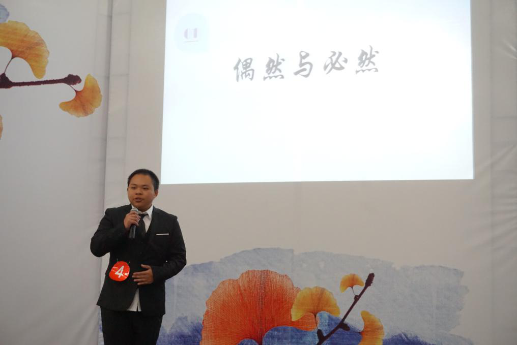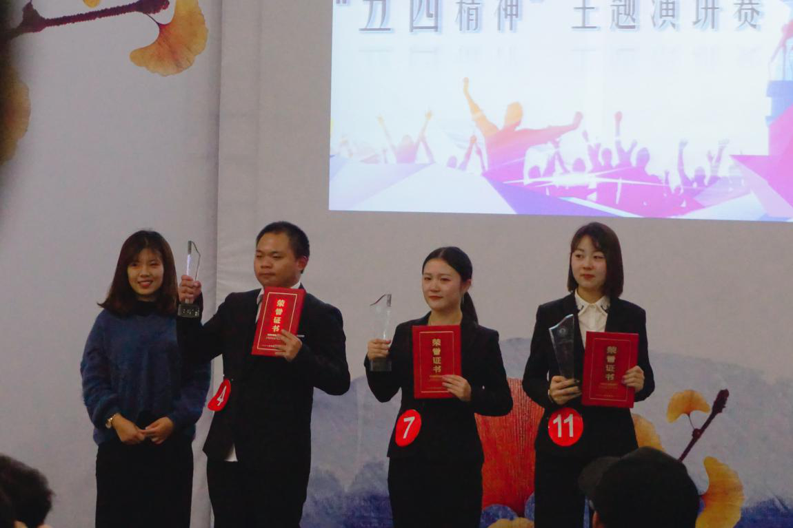 比赛分为三轮。第一轮比赛围绕“五四精神”进行演讲。王天宝同学以“育五四魂,圆青春梦”为主题进行脱稿演讲,用饱满的情感来诠释他对五四精神的理解。“外争国权,内诛国贼”等话语听得全场观众热血沸腾,并以第三名的成绩挺进6强。第二轮比赛是两人一组进行抽题演讲,这一轮比赛更考验了选手的随机应变能力和知识的储备量。第三轮比赛由第二轮胜出的参赛选手自选题目进行演讲。经过激烈的比赛,王天宝同学荣获三等奖。