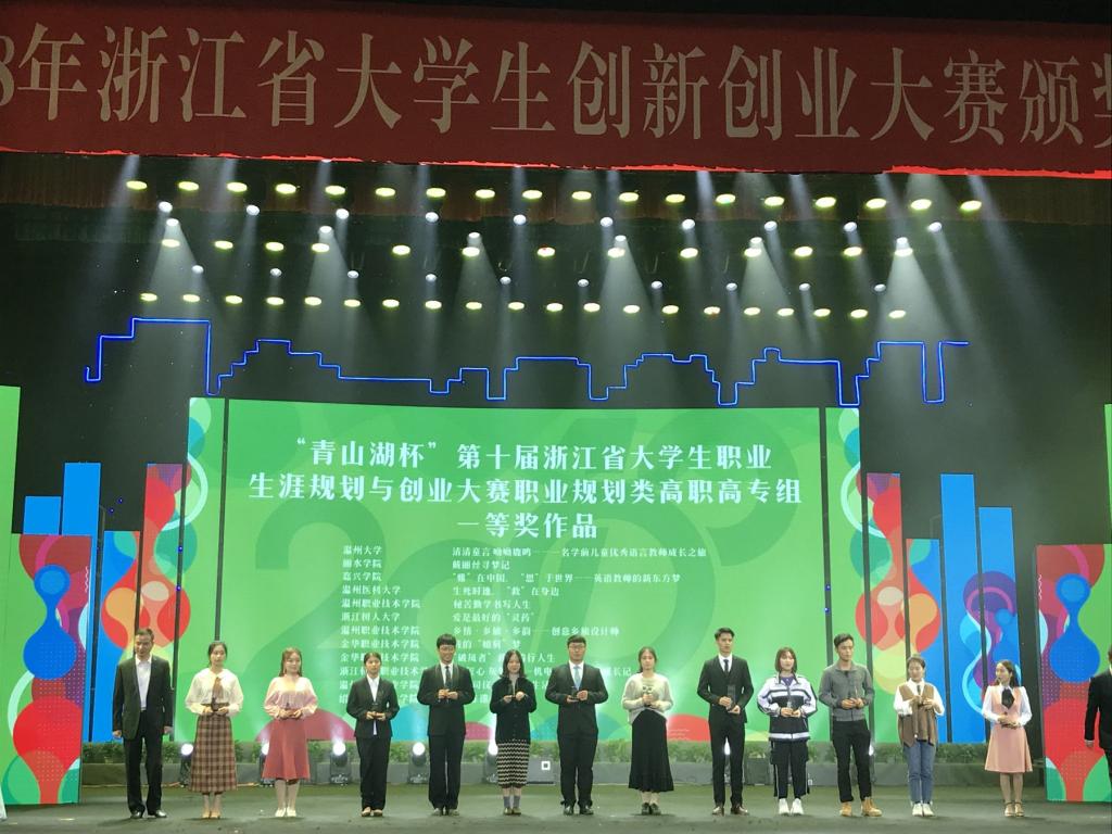 决赛分三个环节:主题陈述、职业体验感悟、现场答辩,雷舒怡同学结合个人特质、外部环境展示了良好的专业素养与完整的个人规划,通过情景剧和个人感悟展示了良好的英语口语与实践能力,并准确而全面地回答了评委的提问,最终以90.13分的高分获得了决赛一等奖。同时,雷舒怡同学被授予“2018年浙江省最佳职业规划之星”荣誉称号,指导老师朱薇婷荣获“优秀指导老师”奖项。