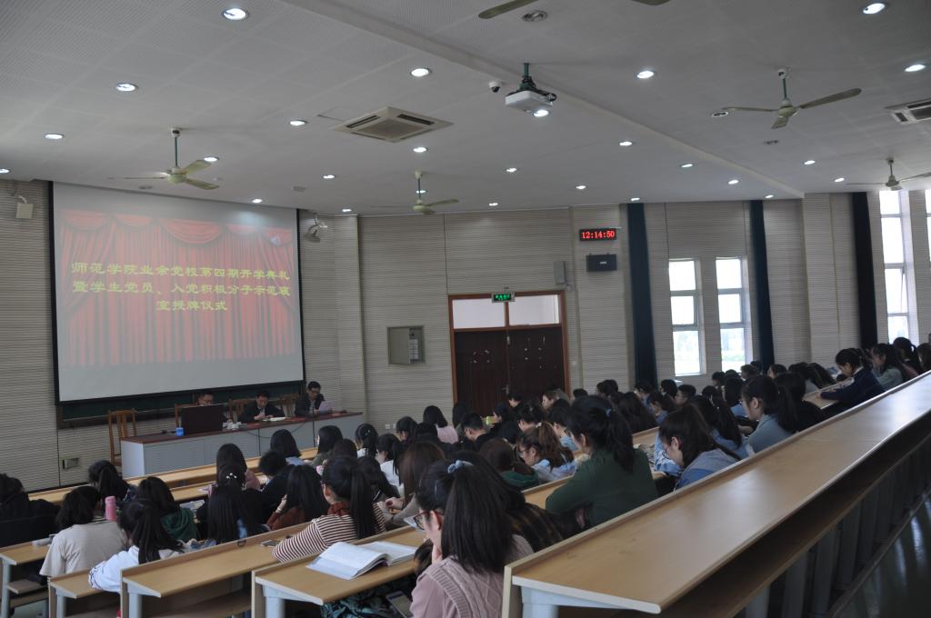 2018年4月25日中午,我院第四期业余党校开班典礼暨学生党员、入党积极分子示范寝室授牌仪式在阶梯教室(一)举行。党总支书记、院长丁连生老师,党总支委员江建老师出席,党校班主任、学员以及全体学生党员、入党积极分子参加。会议由党总支副书记毕洪东老师主持。