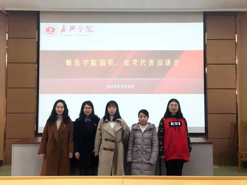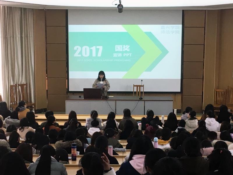 3月8日下午,师范学院在平湖校区阶梯教室(三)举行2017年度国家奖学金、省政府奖学金获得者代表宣讲会,由胡烨弘、祝圣楠、吴怡萱、傅雪芳、蔡婷美等五位同学主讲,学院三百多名学生代表及学工办全体老师参加。