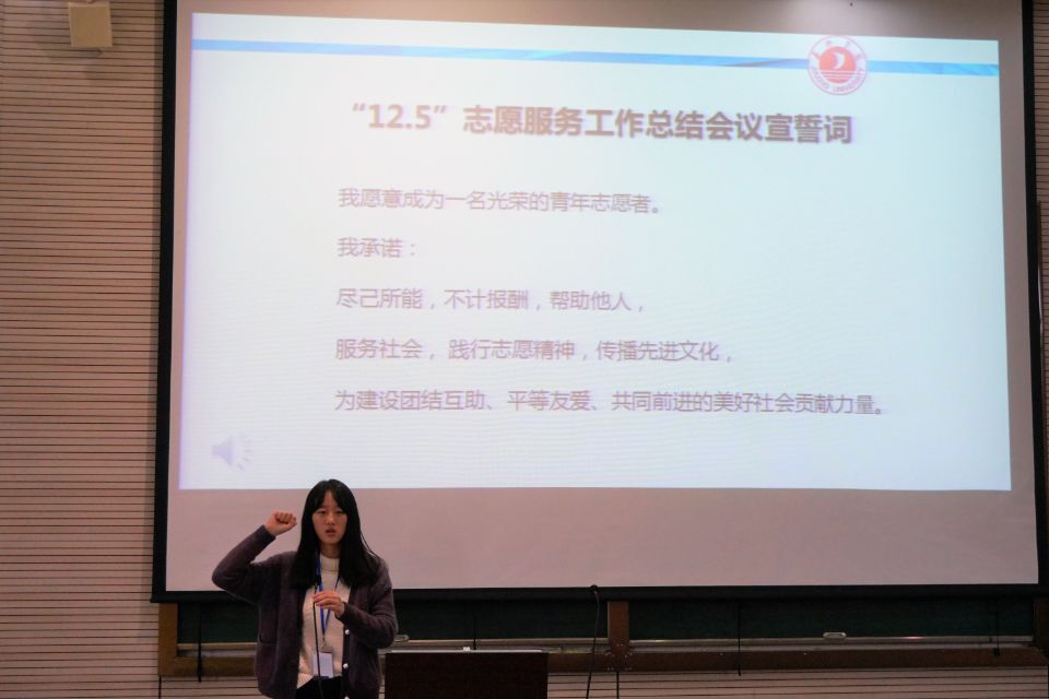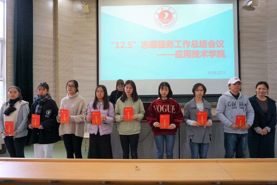 12月5日中午,应用技术学院在阶梯教室一开展了12·5国际志愿者日志愿服务周总结大会,110名同学到场参加。