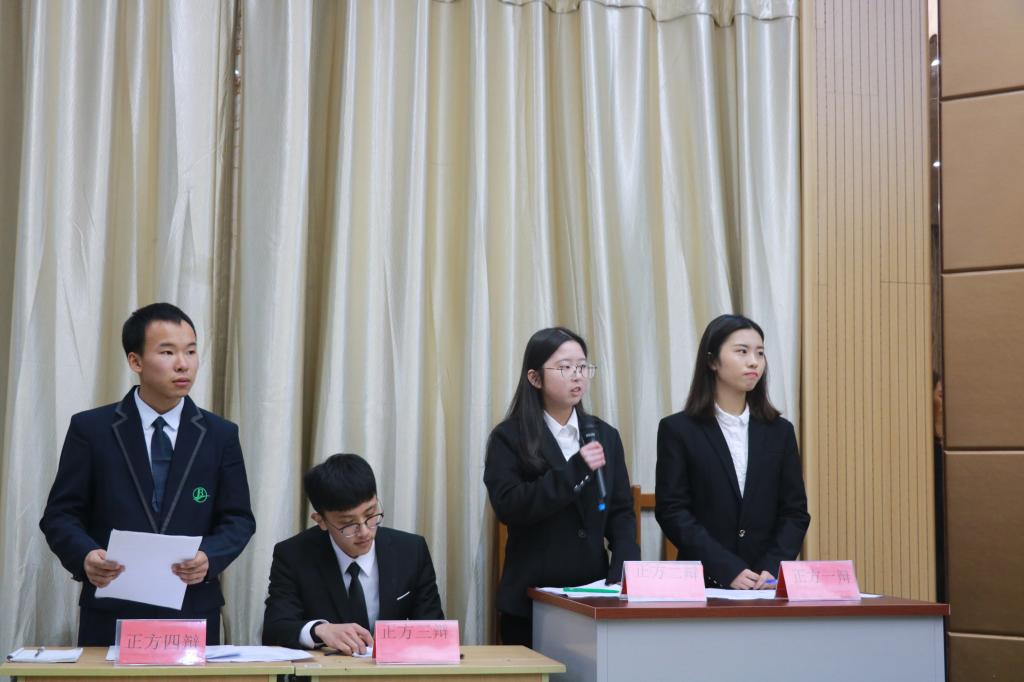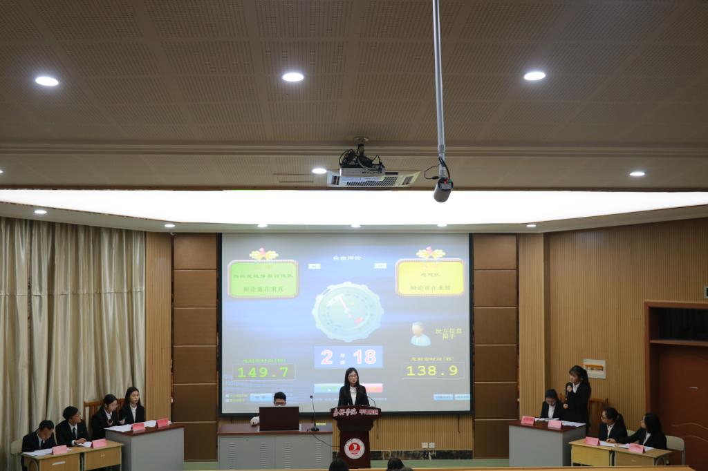 正、反双方你来我往,唇枪舌剑,紧张的气氛持续不降。其中最让人深刻的是自由辩论,各方队员配合默契,反方紧扣“智”这一字侃侃而谈。而正方抓住反方的一丝漏洞进行打击,而反方错失几次良机,渐渐处于被动状态。比赛结束,卓海丹老师对辩论双方关于辩题的解读做出点评,肯定了双方的努力。