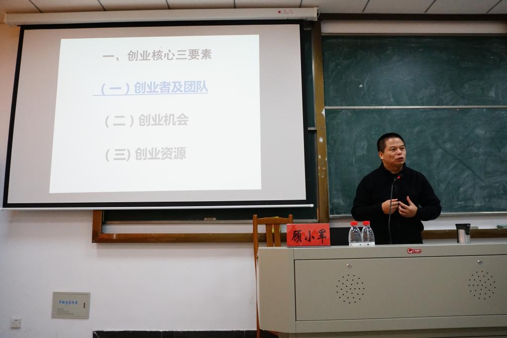 讲座中,顾老师从创业者及团队、创业机会及创业资源三方面,运用案例、视频与图表,为同学们做了丰富而生动的讲解,详细地告诉同学们在这个变化迅猛的世界,应培养企业家精神和互联网思维。顾老师强调参加比赛不是目的,培养分析问题、解决问题的能力才是目的,同时他还分享了如何定位创业项目,如何撰写创业计划书等经验。最后许多选手针对自己的创业设计提出了问题,顾老师也一一进行了耐心解答。