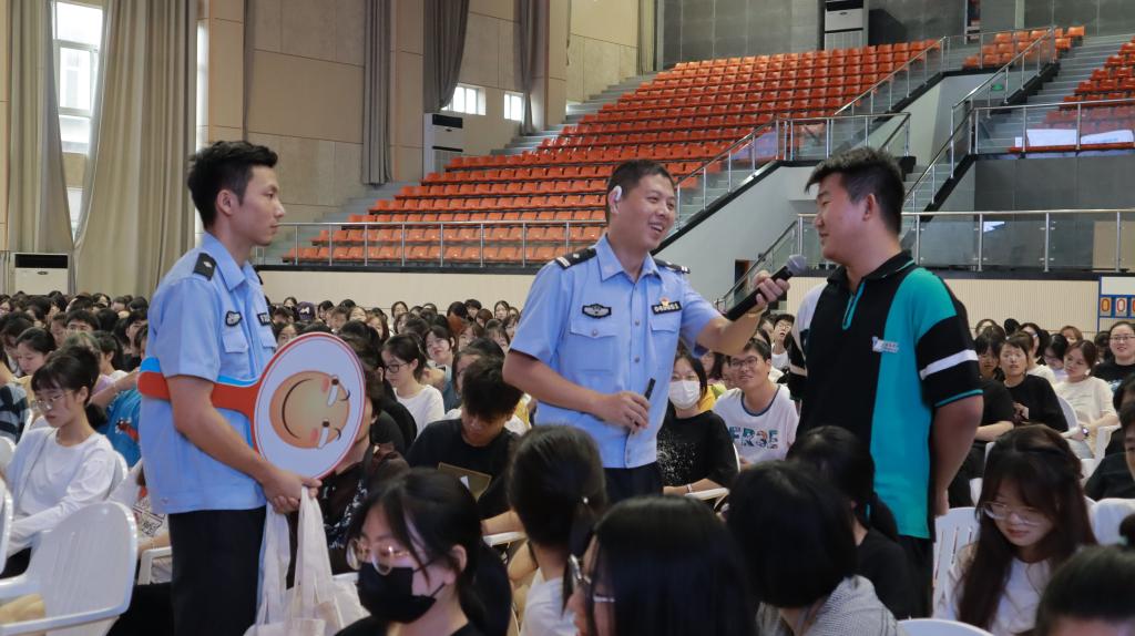 本次讲座由防范毒品和反诈骗两部分组成。警官以提问开始,向我们讲解了新型毒品类型以及毒品的危害。在诈骗知识讲解中,董警官先通过发放小奖品的形式调动起新生的积极性。随后,借助多个真实案件和情景模拟,生动展现刷单、冒充客服诈骗、游戏诈骗等常见诈骗事件,并向新生提出六点防诈骗建议。最后,移动公司业务人员为新生详细讲解手机号的相关知识,提醒学生要注意自己的信息安全。