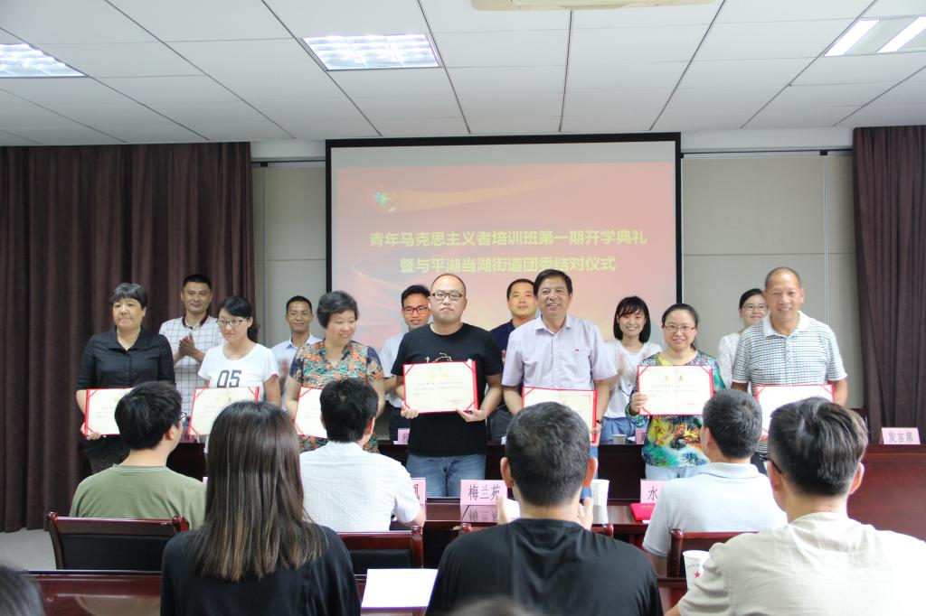 6月24日下午,学院青年马克思主义培训班(青马班)第一期开学典礼暨与当湖街道团委结对仪式在平湖当湖街道第四会议中心举行,平湖市团委书记程传保、当湖街道党委副书记潘加林、学院党总支副书记冯伟芳、当湖街道团委书记周宇、当湖街道村社区办主任金卫锋应邀出席参加,13个结对村社区书记、主任,26位学员参加。仪式由学院学工办主任兼团总支书记卓海丹主持。