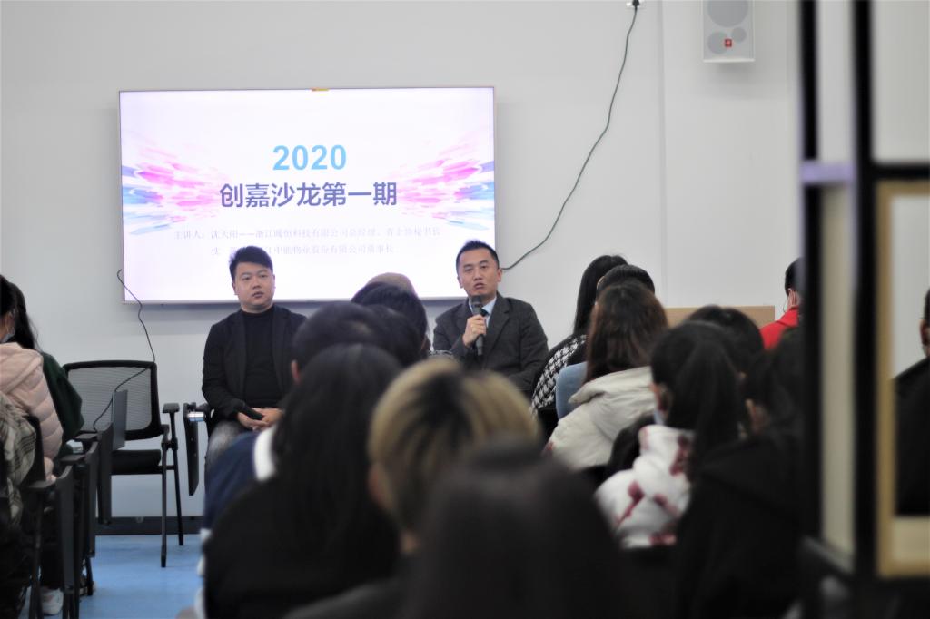 2020年12月26日上午,学院创嘉沙龙第一期在创嘉工作室如期开展。学院两位校外创业导师----浙江中能物业股份有限公司董事长沈燕、浙江暖恒环境科技有限公司总经理沈天阳应邀与43位青年大学生面对面,就大学生为何要创新创业展开广泛交流。