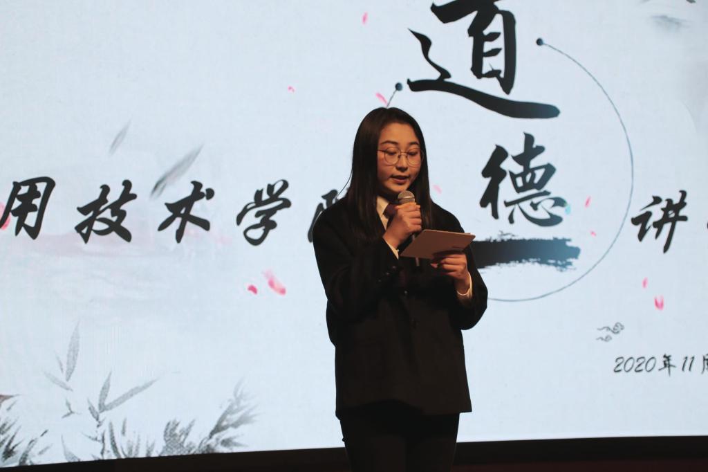 11月27日晚上18:00,学校2020年“道德讲堂”应用技术学院专场在平湖校区报告厅顺利举行。学院学工办主任兼团总支书记卓海丹、团总支副书记缪婷婷和258位学生参加活动。