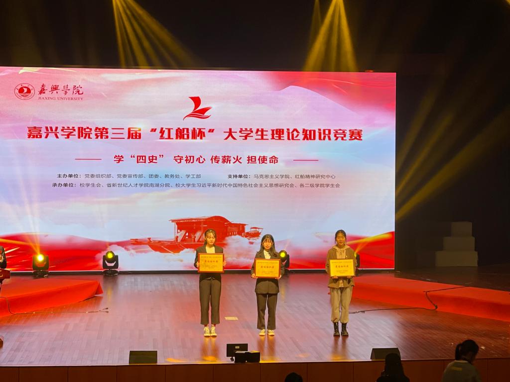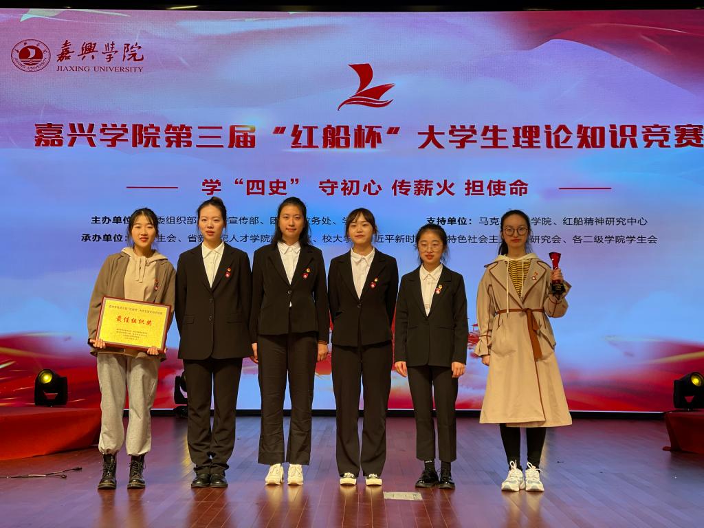 师范学院丁一禾、何静妍、王璇三名同学凭借刻苦的赛前训练、扎实的理论知识以及良好的心理素质,在决赛中层层攻破、默契配合;黄彬心同学在“微团课”中仪态大方,展现了师院风采。最终团队获得嘉兴学院第三届“红船杯”大学生理论知识竞赛综合成绩排名第一的好成绩,连续三年蝉联冠军。同时,师范学院喜获嘉兴学院第三届“红船杯”大学生理论知识竞赛最佳组织奖。