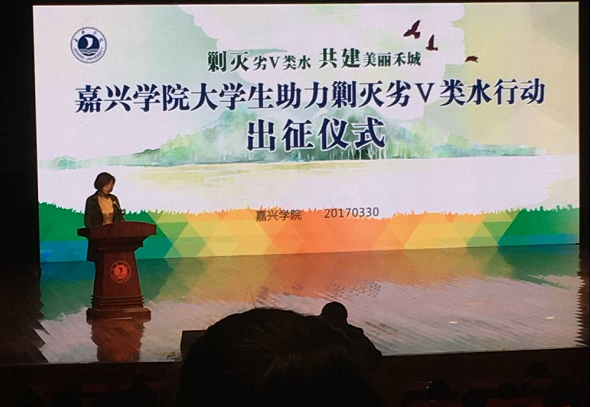 我院青春治水服务队,于2017年3月30日赴嘉兴学院梁林校区参加“剿灭劣V类水”行动出征仪式。本次活动的参与人员有宋瑞豪、宋剑钧、郦凯丽、尹舒婷等共46人。