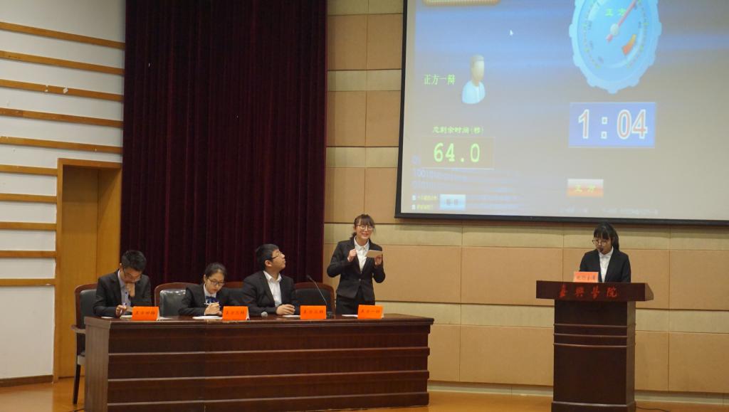 嘉兴学院第十六届辩论赛决赛于2017年3月25日13时30分在梁林校区TCL报告厅顺利举行。本次大赛由发展规划处副处长王海军老师,党校办副主任黄金珠老师,校党委宣传部副部长刘巧芝老师,档案馆馆长顾顺奎老师,以及马克思主义学院副院长彭冰冰老师担任评委,各学院学生到场观看了比赛。