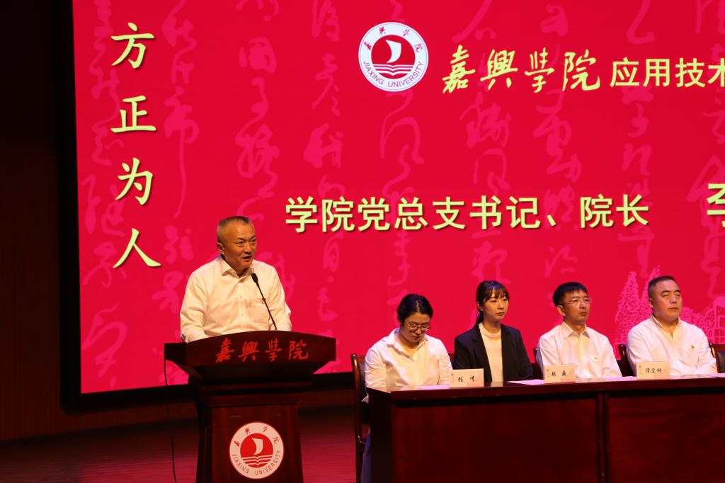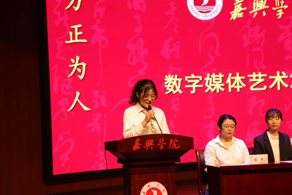 教师代表校优秀共产党员、优秀班主任王轶群鼓励新同学要满怀热情,以饱满的姿态迎接大学生活,要善用自己的能力,以高昂姿态继续努力前行。“嘉院人物”商务英语191班何文豪同学作为老生代表发言,他分享了自己的大学生活和志愿服务抗击新冠疫情经历,希望新同学始终保持对国家、生活和学习的高度热情。新生代表数字媒体艺术201班董娜同学代表全体新生承诺,争做新时代一流大学生,为学院和学校的发展贡献青春力量。