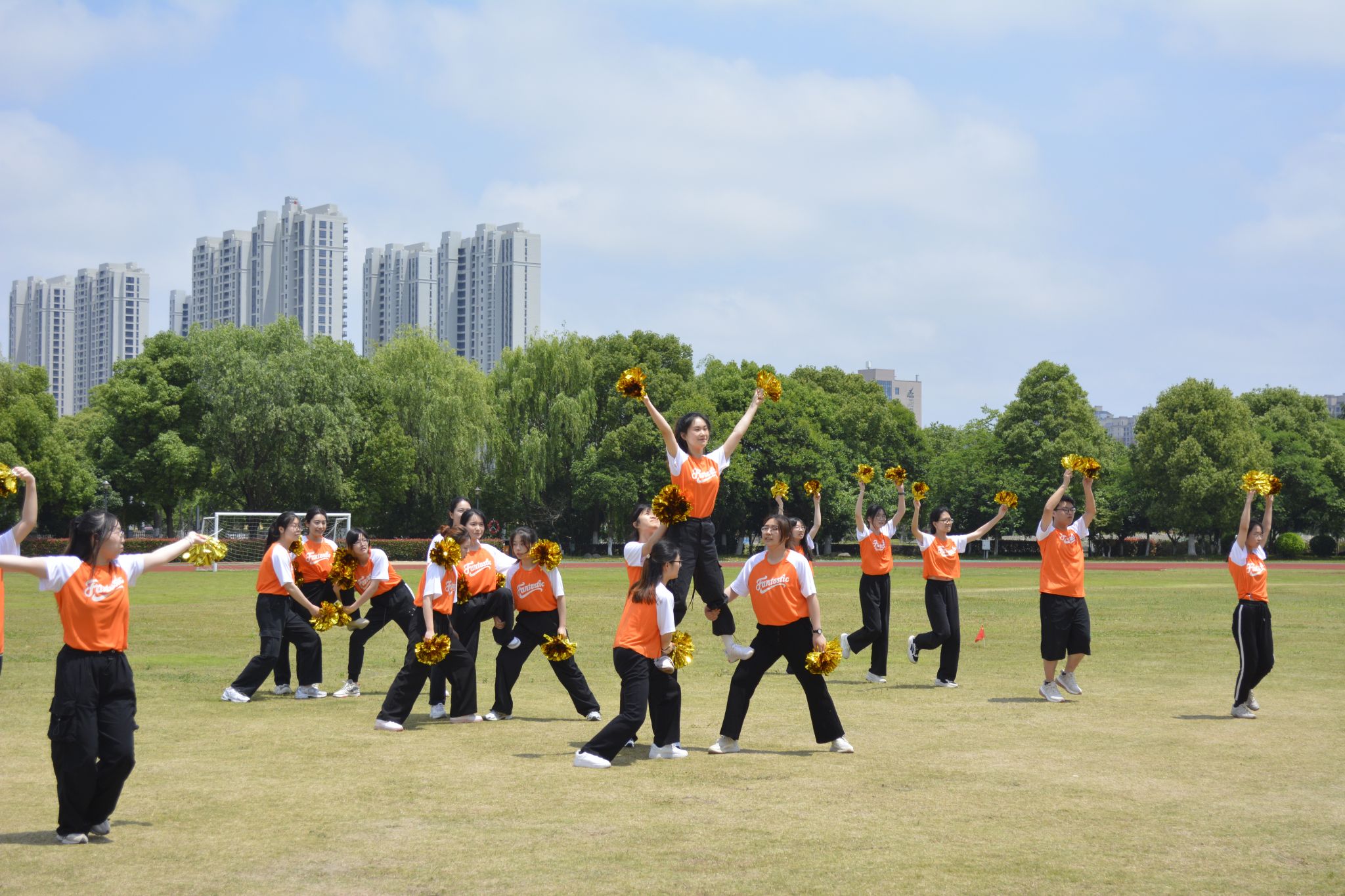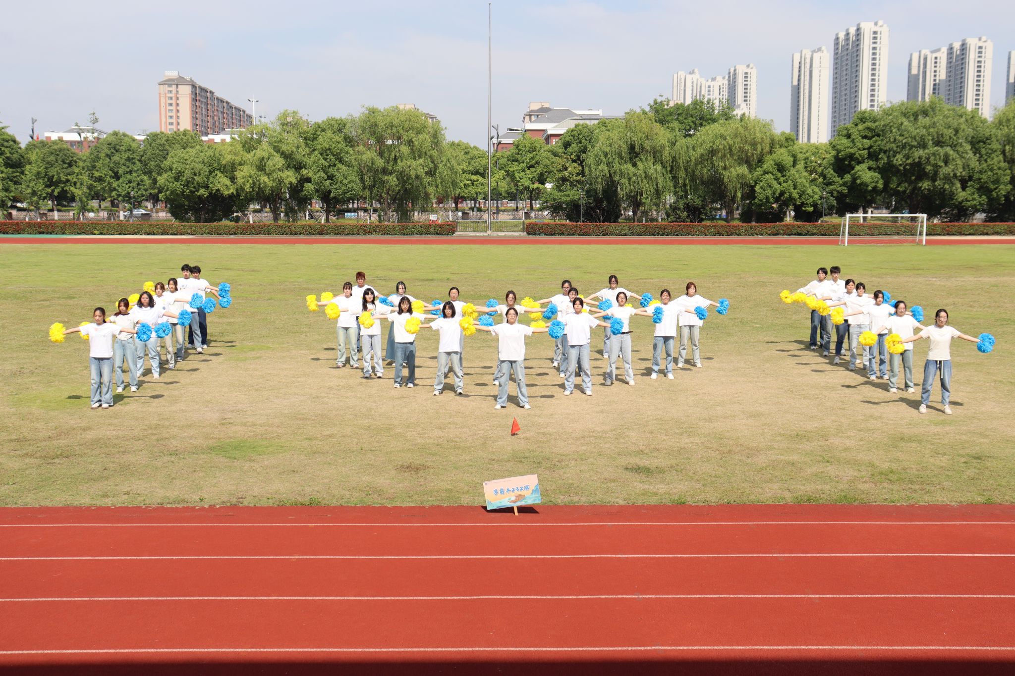 “体育承载着国家强盛、民族振兴的梦想”。学院31个班级,共计700多名学生参加本次大赛,国家健将、体操运动员黄鑫刚,健美操兼形体专任教师张红,学院团委钟张懿等老师担任评委。大赛在热情洋溢的《向快乐出发》集体热舞中激情展开。根据比赛顺序,每个班级依次表演。比赛中,各班队伍展现了高昂的精神风貌,挥洒出了青春的汗水,绚丽的花球、跃动的双手、轻快的步伐在阳光下散发出青春的朝气。