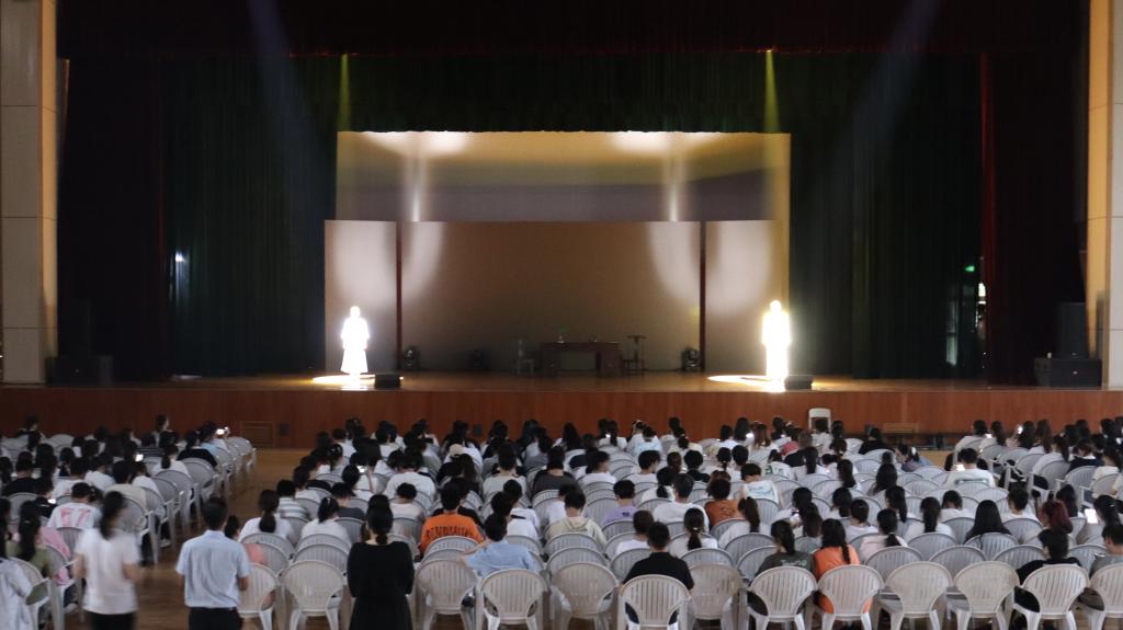 2023年6月1日晚上,嘉兴学院原创话剧《初心》在体艺楼进行演出,学院2022级学生及师生党员共600余人观看本次演出。