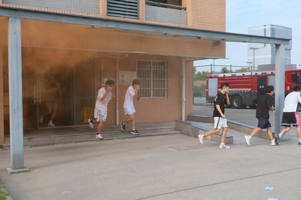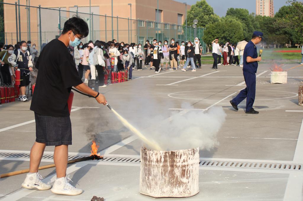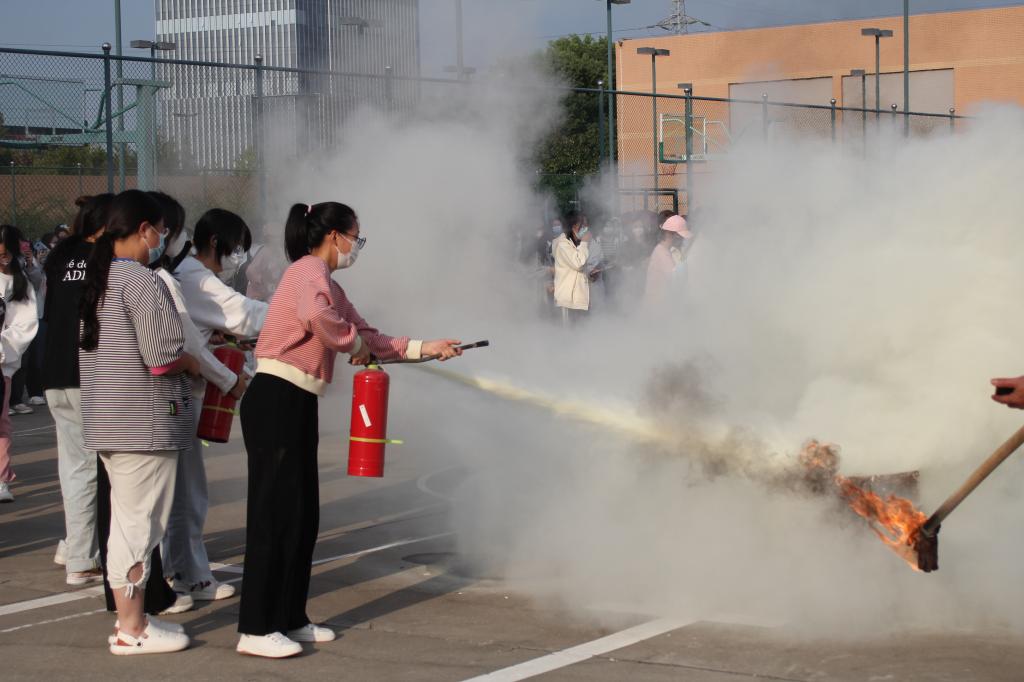 随后,全体新生至学院操场旁进行了消防逃生演习。新生代表在警报声中迅速撤离寝室并按照既定路线逃生,整个演习过程井然有序。专业人士现场指导如何使用灭火器,让新生不仅仅从理论上学习了解消防知识,更提高了对火灾自救行为的认知。