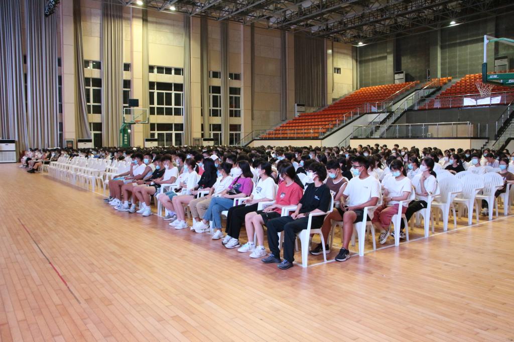 2022年8月21日晚上,yl23411永利2022级新生始业教育之“新生适应教育”于体艺楼顺利开展,学工办主任唐曦主持会议,2022级全体新生参加会议。