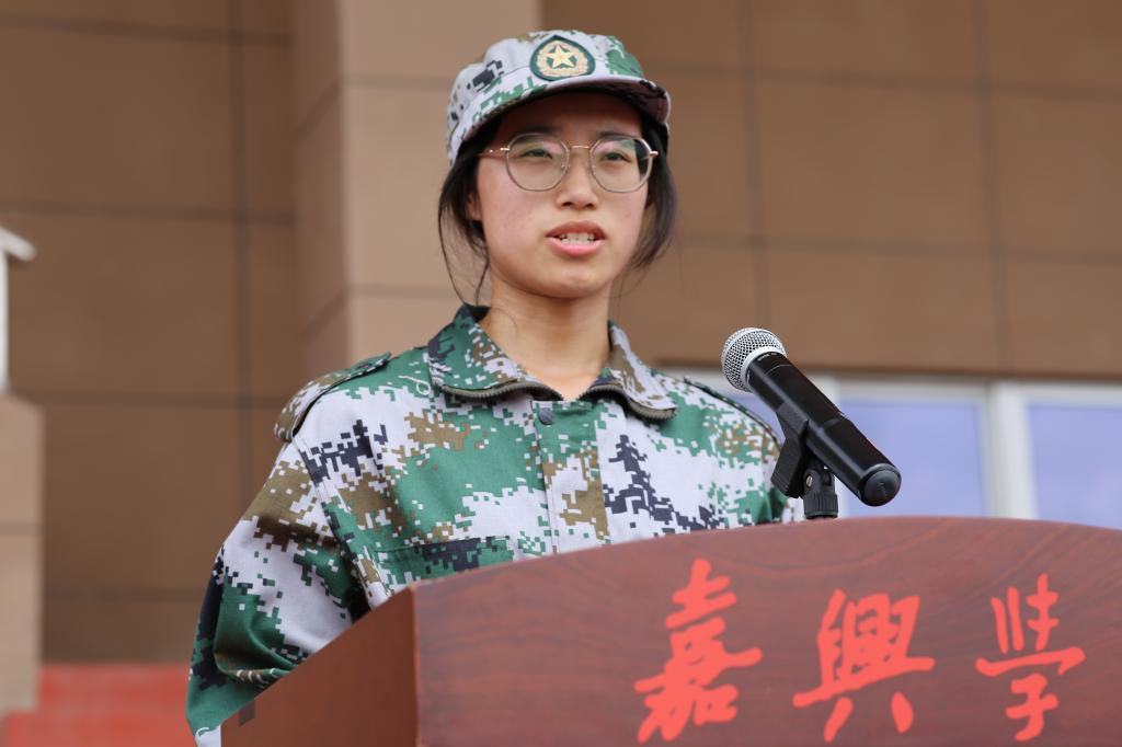 军训优秀学员代表、来自服装与服饰设计专业的方宁同学代表全体参训同学发言,表示作为新时代的青年和红船旁的学子,将积极践行对党和人民许下的“请党放心、强国有我”的坚定承诺,为实现中华民族伟大复兴的中国梦贡献青春力量。