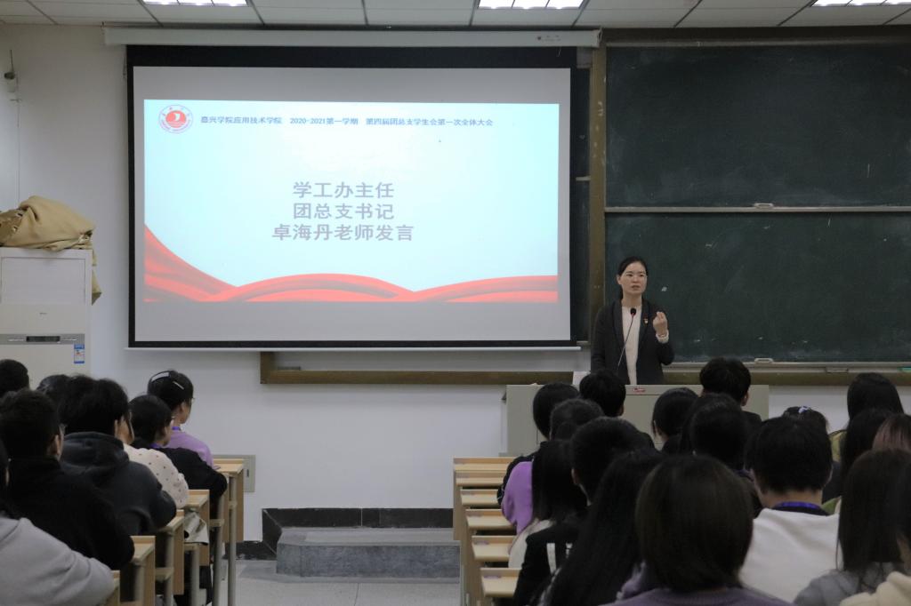 11月20日中午12点,应用技术学院第三届团总支、第四届学生会第一次全体大会在多媒体教室二顺利召开。应用技术学院学工办主任兼团总支书记卓海丹老师、辅导员缪婷婷老师及团总支、学生会全体成员参加。