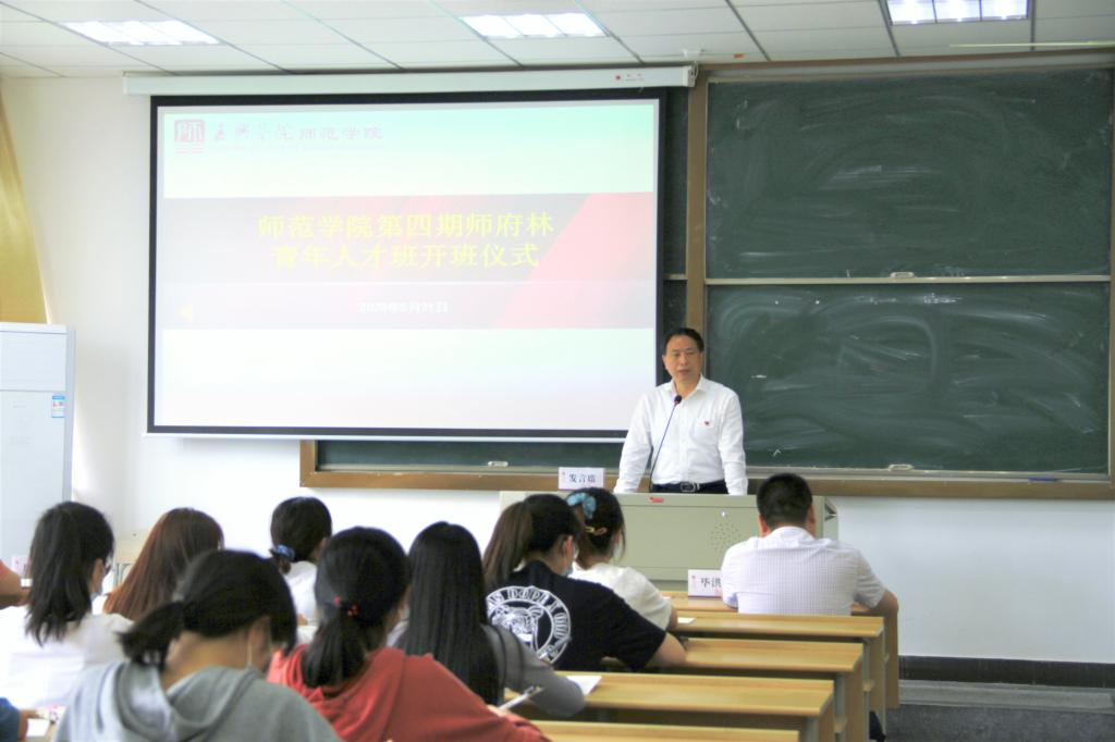 5月21日中午12时10分,师范学院第四期师府林青年人才班开班仪式于明德楼多媒体教室五顺利举行。党总支书记、院长丁连生,党总支副书记毕洪东以及学工办全体老师出席本次仪式。毕洪东老师主持仪式,第四期师府林青年人才班全体学员参加此次仪式。