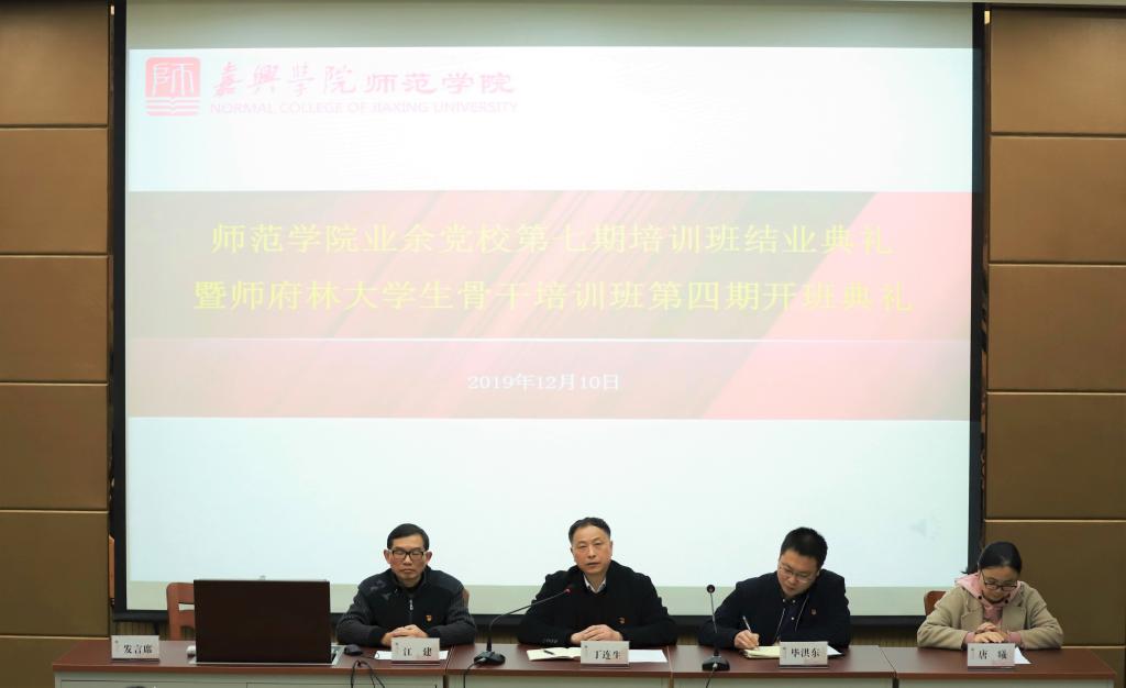 12月10日中午,师范学院师府林学生骨干培训班第四期开班典礼在阶梯教室三顺利进行。师范学院党总支书记、院长丁连生老师,党总支副书记毕洪东老师,党总支委员江建老师,团总支书记、学工办主任唐曦老师,学工办所有辅导员老师出席典礼,全院100余名学生干部参加,典礼由毕洪东主持。