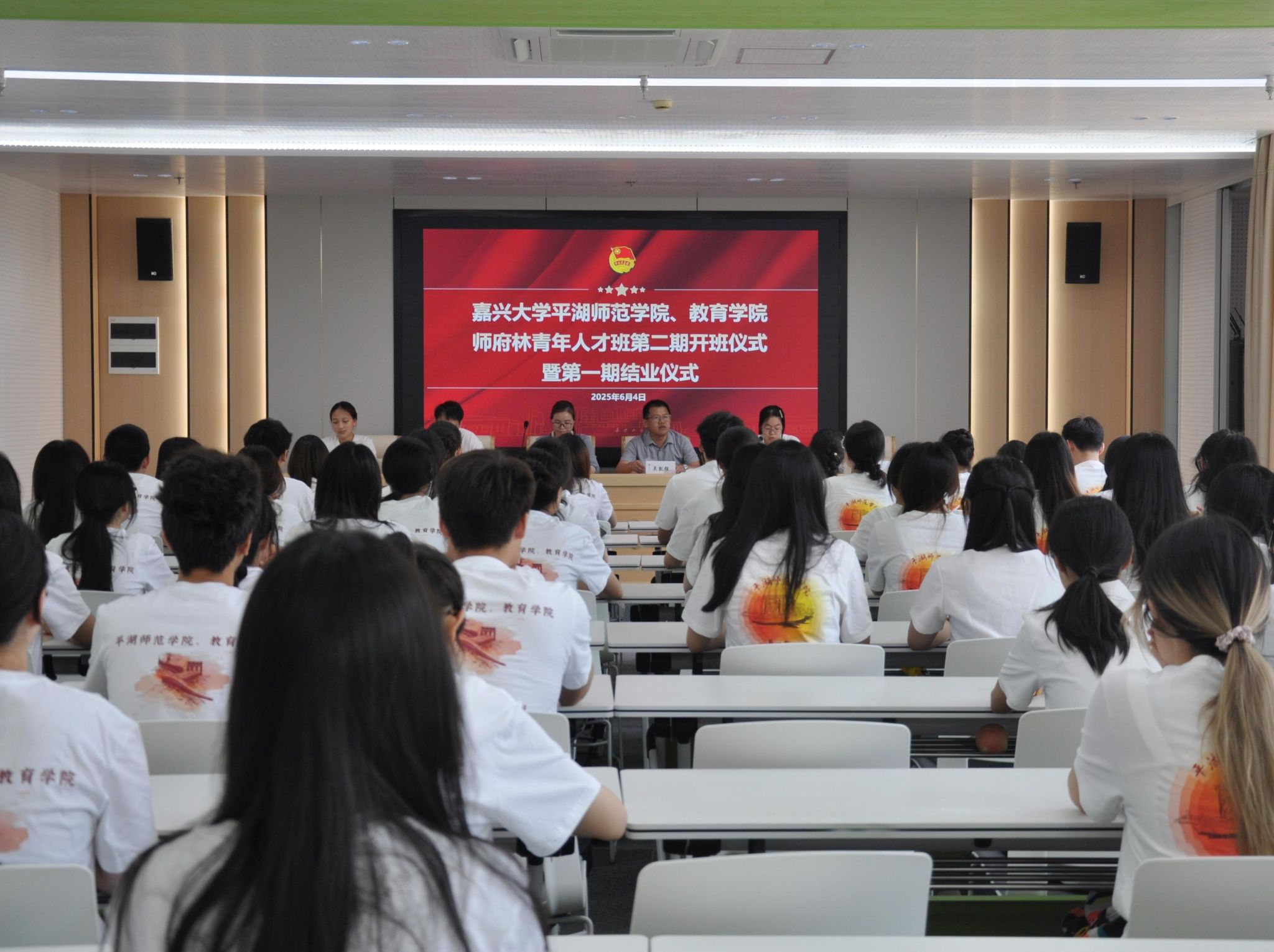 2025年6月4日中午,yl23411永利、教育学院师府林青年人才班第二期开班仪式暨第一期结业仪式顺利举行,学院党委副书记卓海丹、团委书记吴凯强、团委副书记程赟涛和第一、二期青马班全体学员参加。