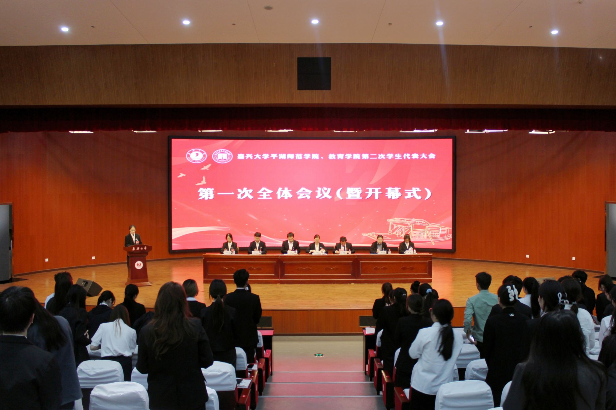 学生会执行主席叶雨晨代表学院第一届学生委员会作题为《弘德恪职睿学创优精诚团结砺担当载一抱素铸荣光攒聚平师学子风采以赤子之心赓续红色基因以时代新貌绘就青春注脚》的工作报告。