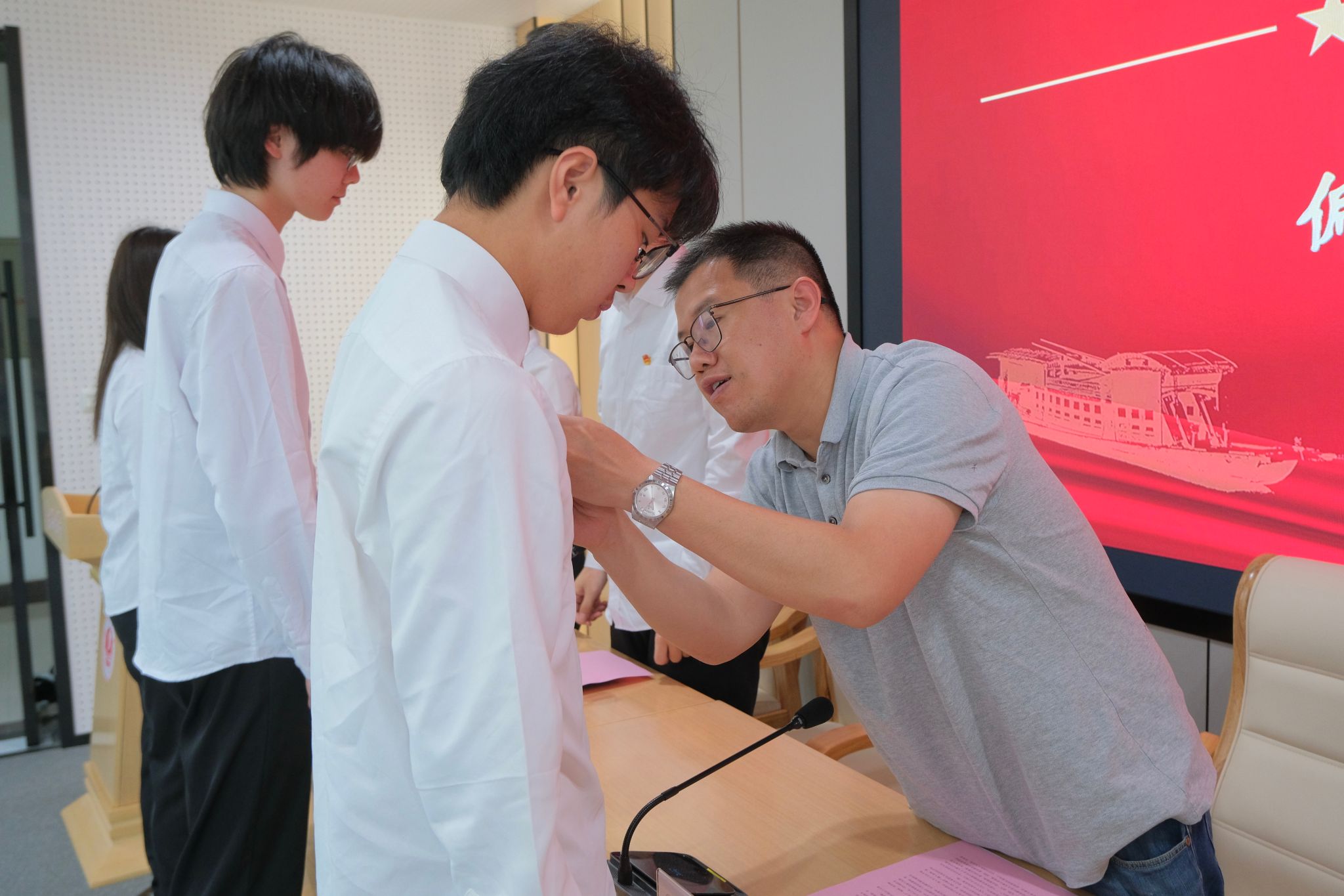 仪式上,全体新团员佩戴团徽进行庄严宣誓。