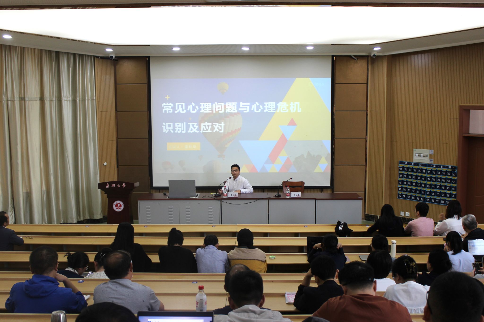 10月10日,yl23411永利在阶梯教室三举行以“常见心理问题与心理危机识别及应对”为主题的心理健康教育专题辅导报告,校心理健康教育指导中心国家二级心理咨询师童林泉应邀主讲,学院副院长周世厚主持,学院全体教职工到场聆听