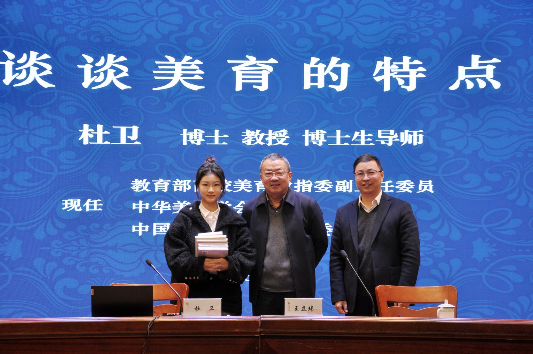 报告会上,杜卫教授向学院捐赠《美育学》《美育学概论》等个人著作,一一解答现场师生提问。