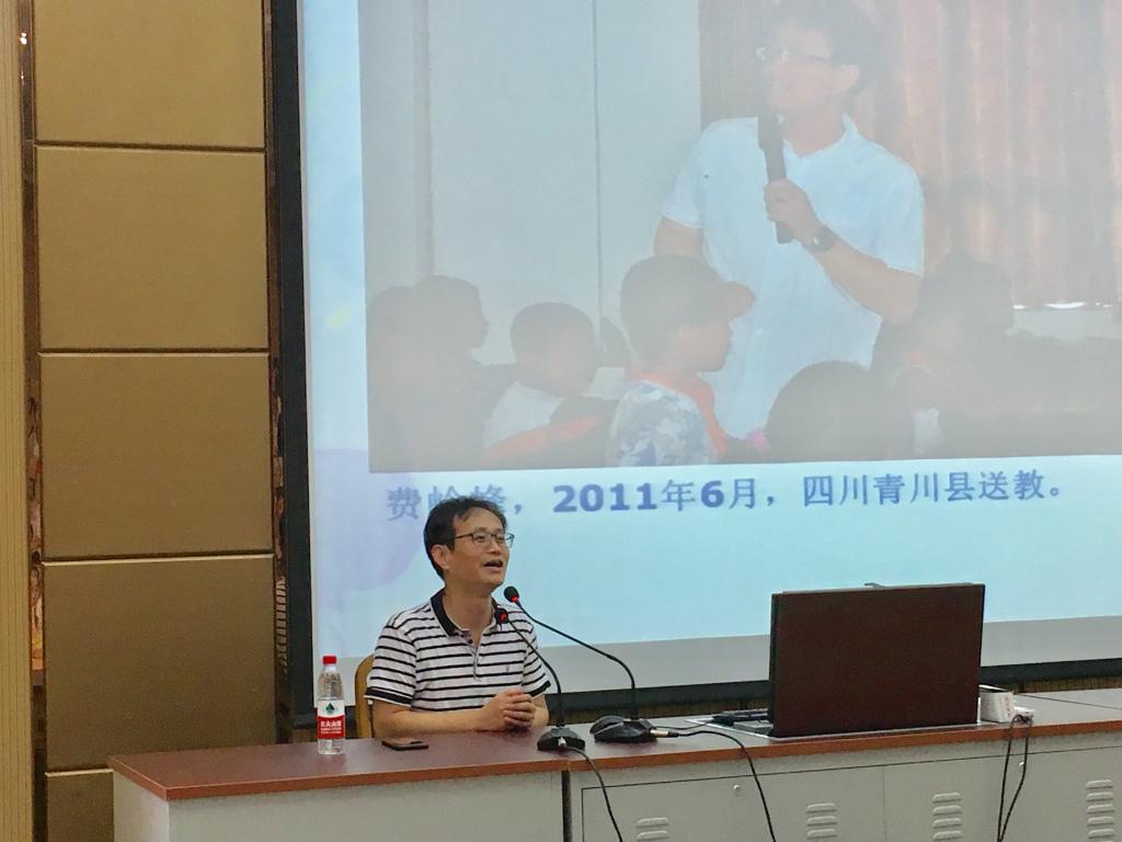 报告会上,费岭峰以“梅西与C罗”、“马云与阿里巴巴”、“郭靖”等人的例子阐述努力的重要性。随后,他回顾了自己任教30年的经历,号召师范学院同学们要通过三个“养”:“涵养一个好心态”、“培养一个好状态”、“涵养一个好习惯”,成为一名合格、优秀的教师,从而在“做一行爱一行”与“爱一行做一行”中寻找平衡。报告会的最后,费岭峰以三句话总结并与全院同学共勉:“人生的‘悟’到需要一个时间点”、“想让别人尊重你,你首先得尊重自己”、“爱上自己的工作,并且让别人感受到你的爱”。