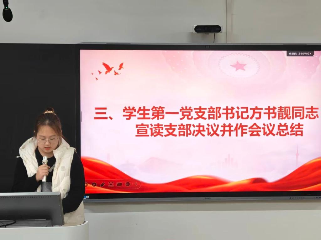 12月4日下午,人工智能学院学生第一党支部于6栋201教室召开接收2025-2期预备党员通表大会。学院组织员刘闯、学生第一党支部书记方书靓、全体党员、10名发展对象及党支部工作人员按时参会。