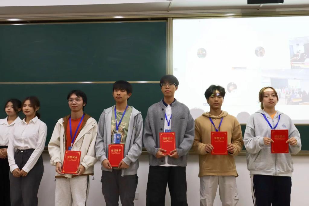 在隆重的表彰环节,黎鑫然老师与吴烜鸿、朱评评、陈垚泠同学为2025-2026学年第一学期的“工作积极分子”“优秀干事”“优秀干部”及“先进部门”颁发了荣誉证书。