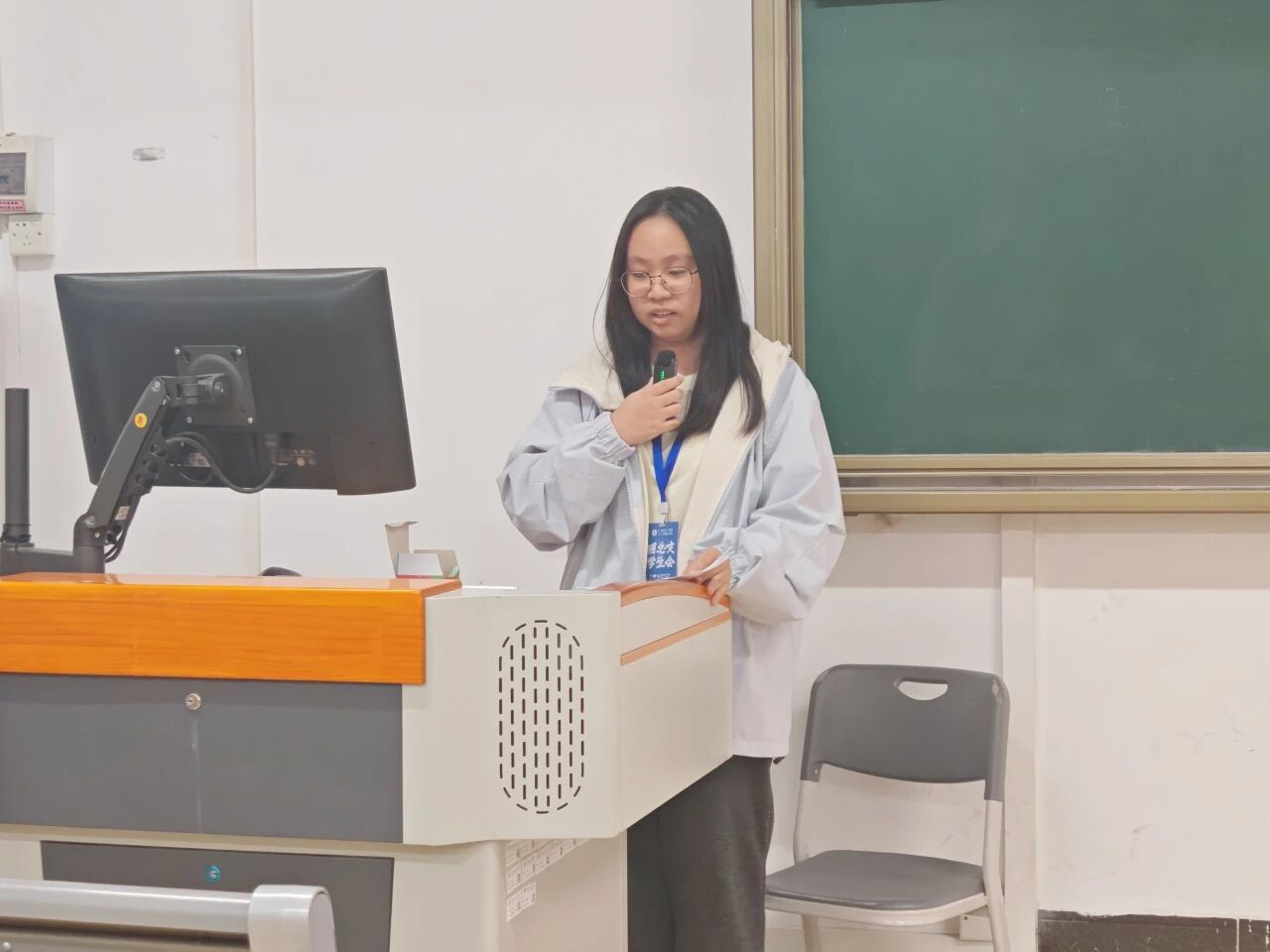 随后,学生会主席团代表陈垚泠作学年工作总结报告。她系统回顾了过去一年团总支·学生会在思想引领、组织建设、校园文化、学术科技、实践服务等方面取得的显著成绩,向全体成员的辛勤付出致以诚挚谢意。围绕新学年的工作,他提出了明确的发展方向和具体的工作要求,号召大家团结一心,锐意进取。