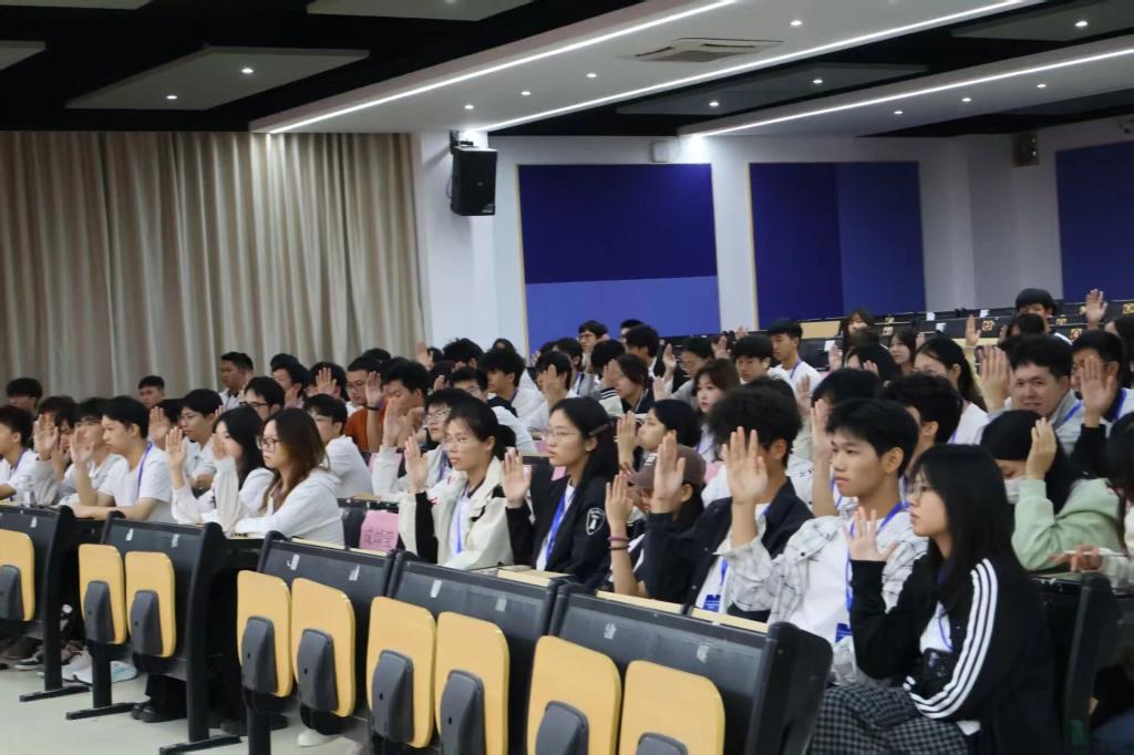 新一届团总支·学生会主席团成员及学生干部代表庄严宣誓,铿锵誓言开启了我院团总支·学生会的崭新篇章。大会在悠扬的团歌声中顺利闭幕,标志着人工智能学院第二次学生代表大会暨学生会换届表彰大会圆满完成。