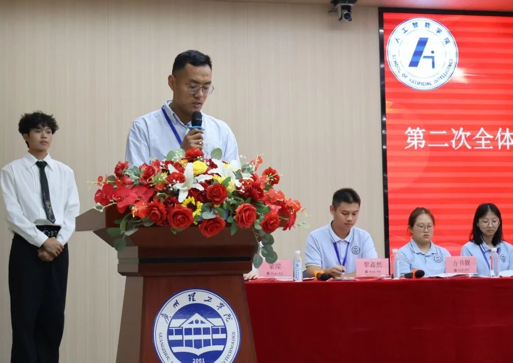 人工智能学院党总支组织员刘闯宣读党总支批复。党总支同意召开大会,同意广州理工学院人工智能学院学生会提出的会议主要任务、议程、代表资格条件、名额分配及产生办法,对主席团候选人名单予以批准,并指出于会议结束后及时将会议情况及选举结果上报广州理工学院人工智能学院党总支。