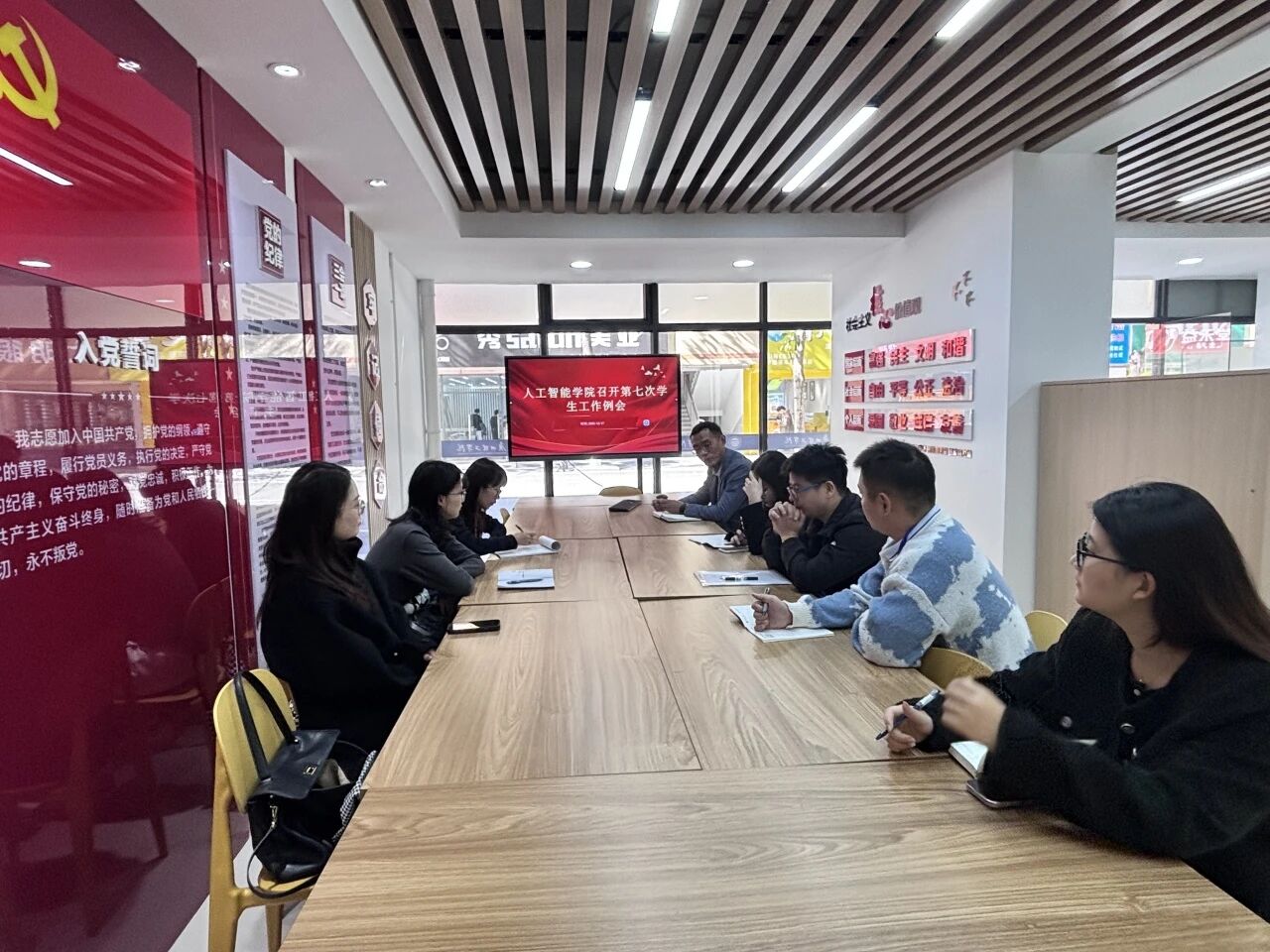 为切实筑牢学生安全防护网,扎实推进学生管理服务工作提质增效,近日,人工智能学院于一站式学生第一社区活动室召开第七次学生工作例会。学院党总支副书记李顺主持会议,全体辅导员参会,聚焦学生人身安全、电信诈骗防范等核心议题,细化工作部署、凝聚育人共识。